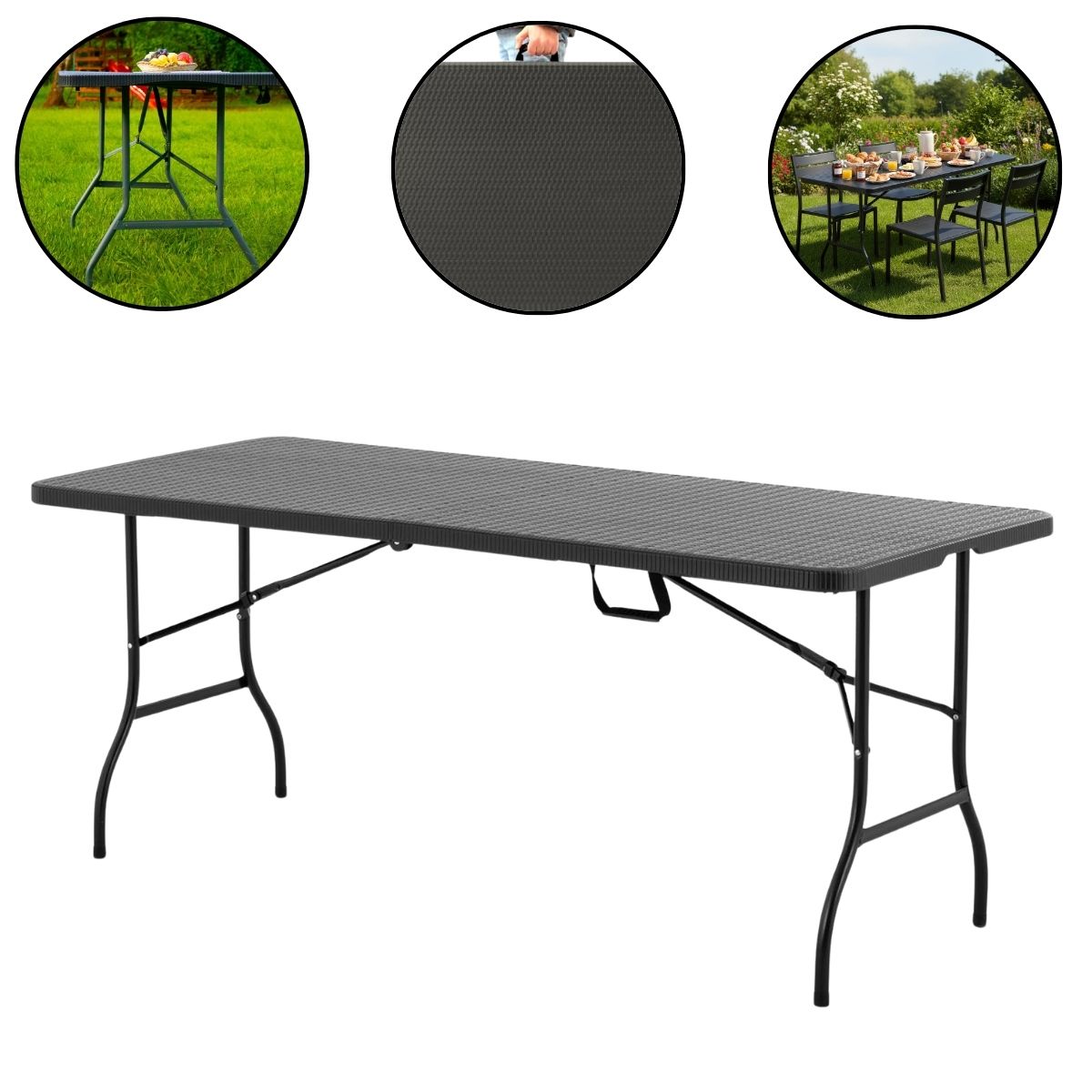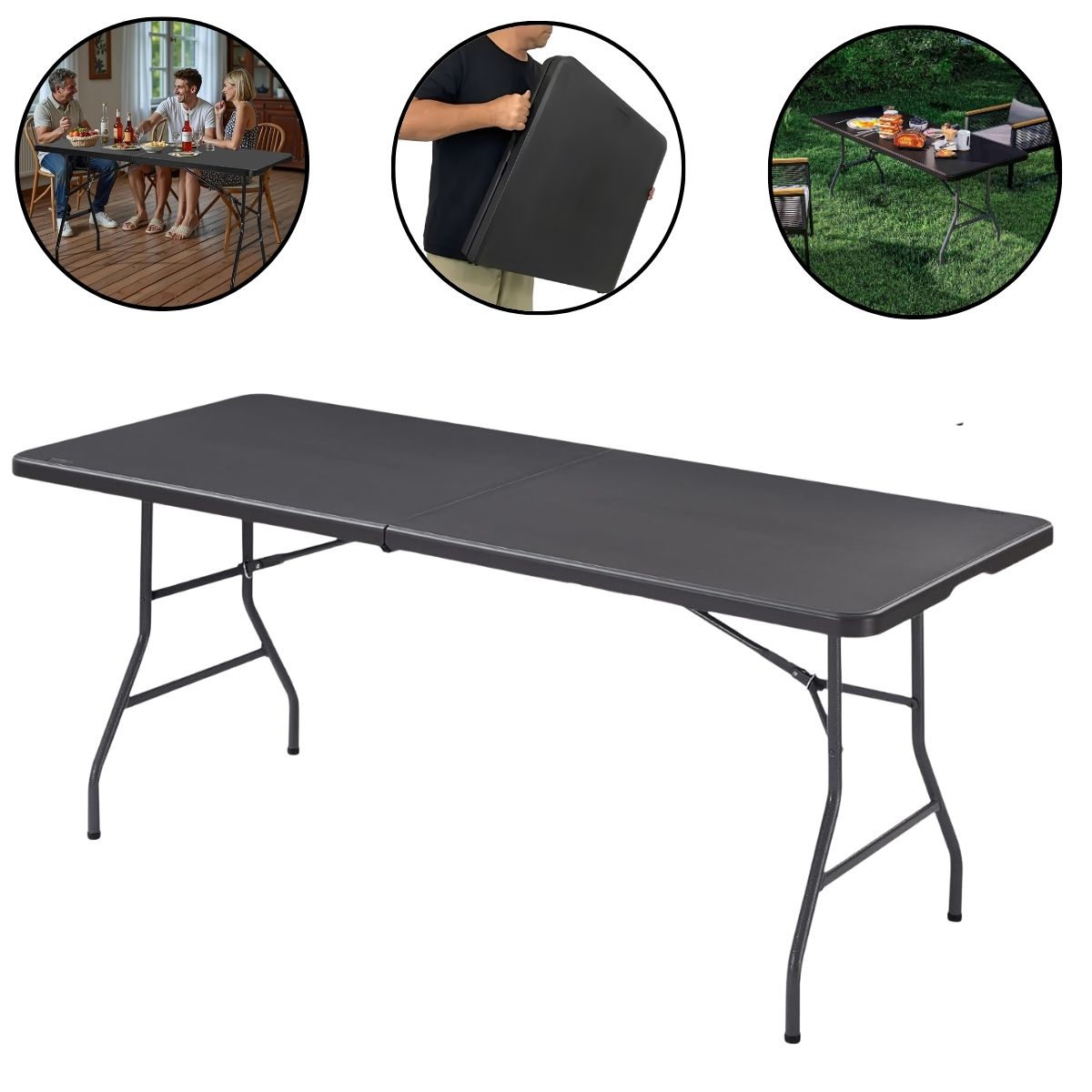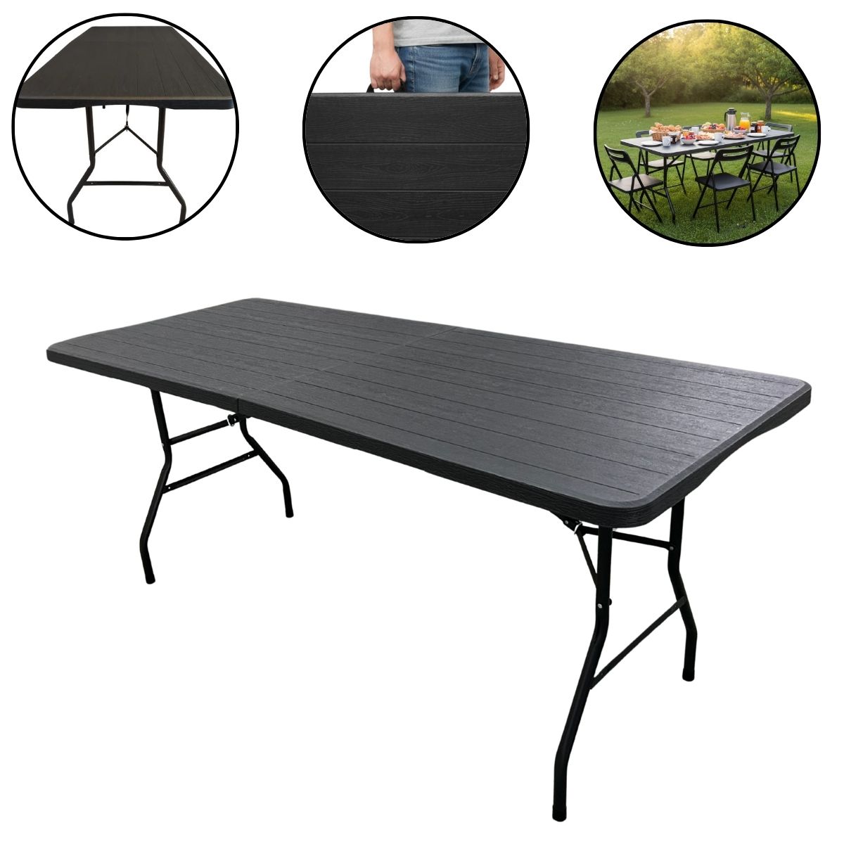 Mesa Camping Dobrável Vira Maleta 1,80.X 0,73M Preto – IWCAM008PT
