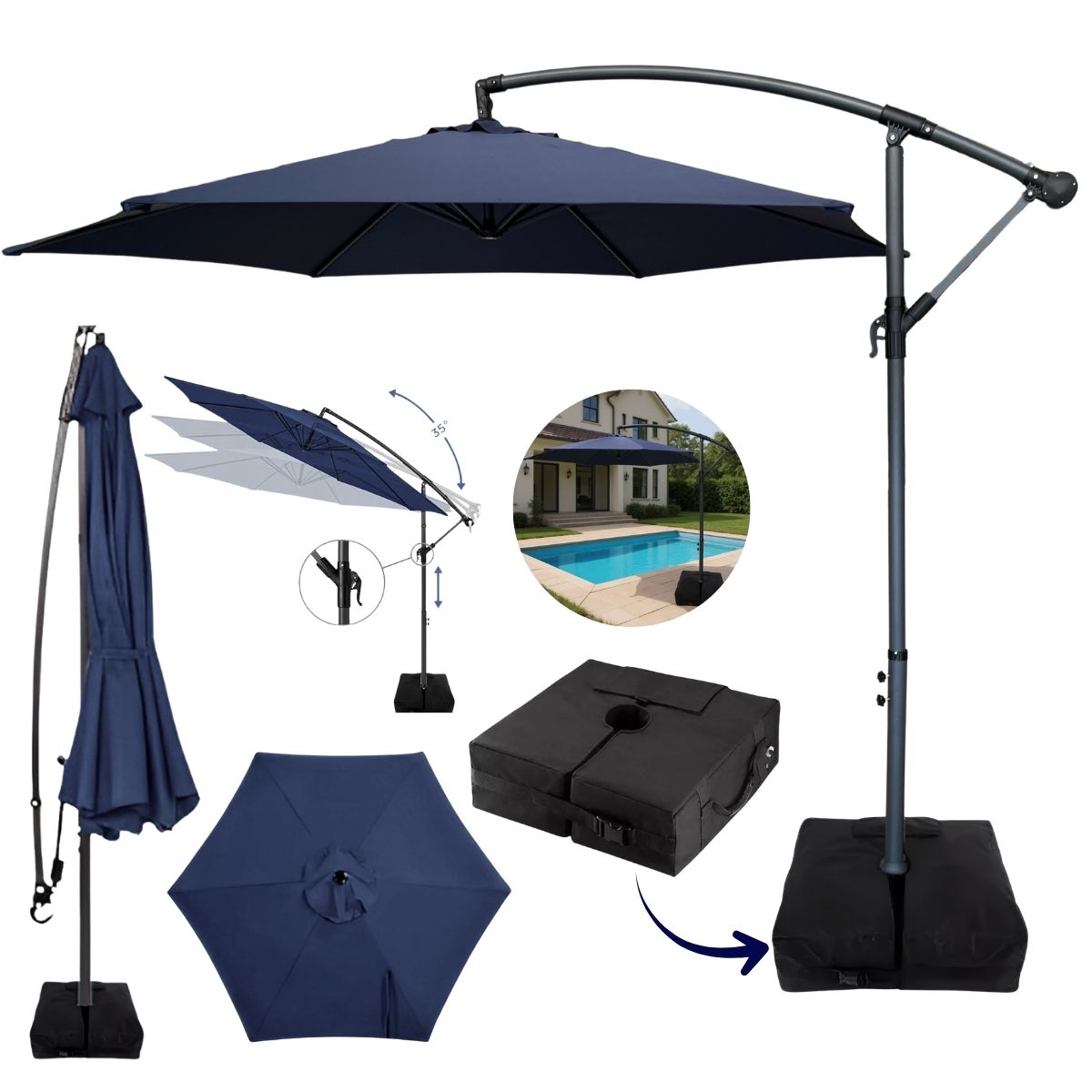 Ombrelone Lateral 3,00M Azul Com Base – IWCJ006AZ
