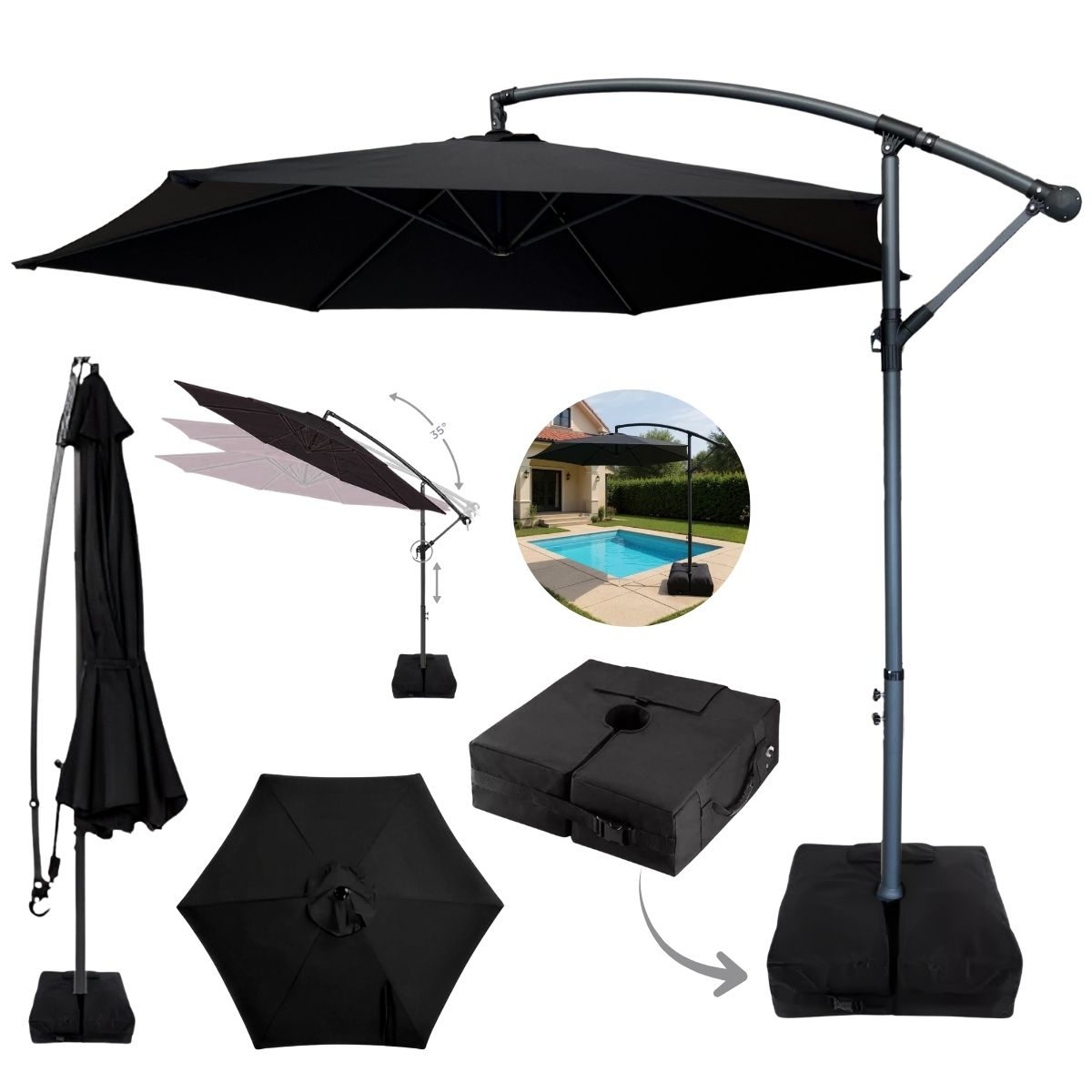 Ombrelone Lateral 3,00M Preto Com Base – IWCJ006PT