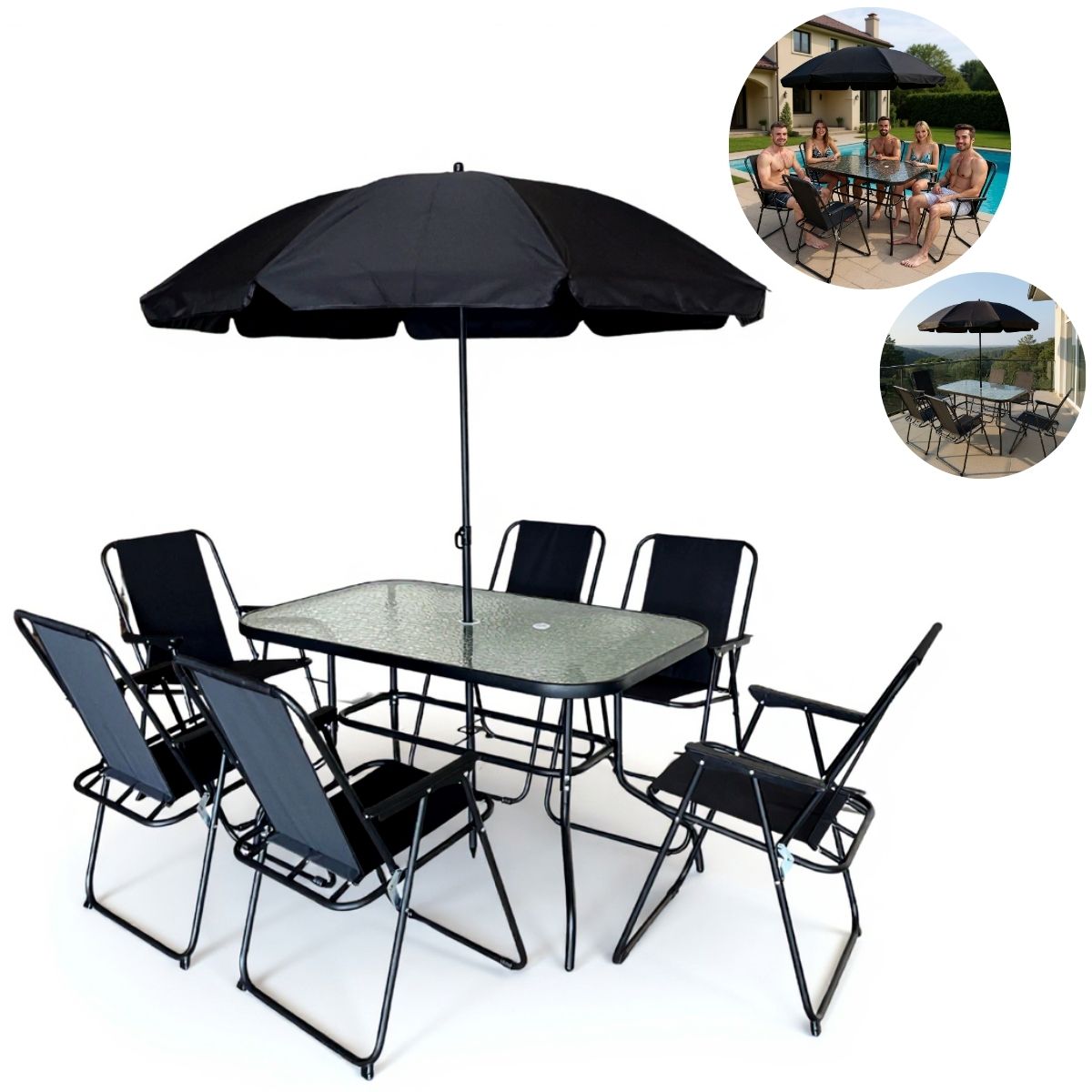 Conjunto 8 peças Mesa, Cadeiras e Guarda-Sol – IWCJ013