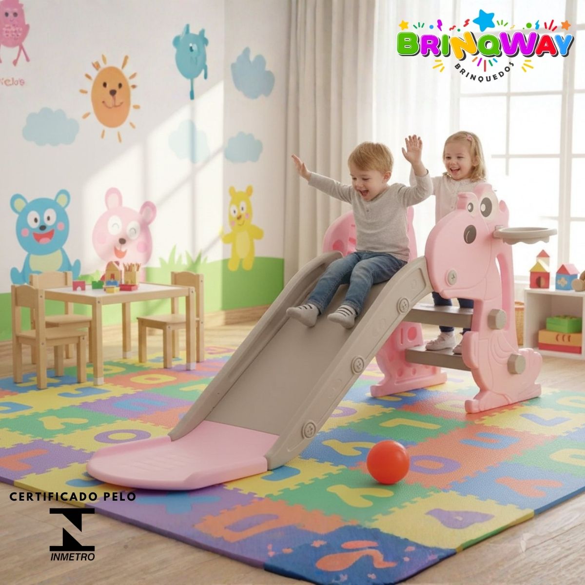 Escorregador Infantil Dobrável 3 Em 1 Rosa – BW458RS