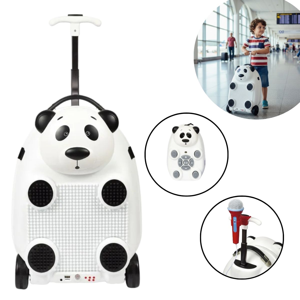 Mala Infantil 3 Em 1 Com Caixa De Som, Microfone E Bloco De Montar Panda – BW361PAN