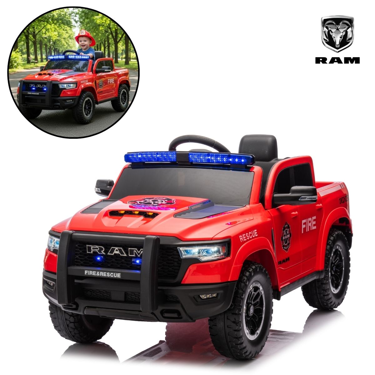 Mini Carro Elétrico 12V Licenciado Dodge Ram 1500 RHO Bombeiro – BW426BOM