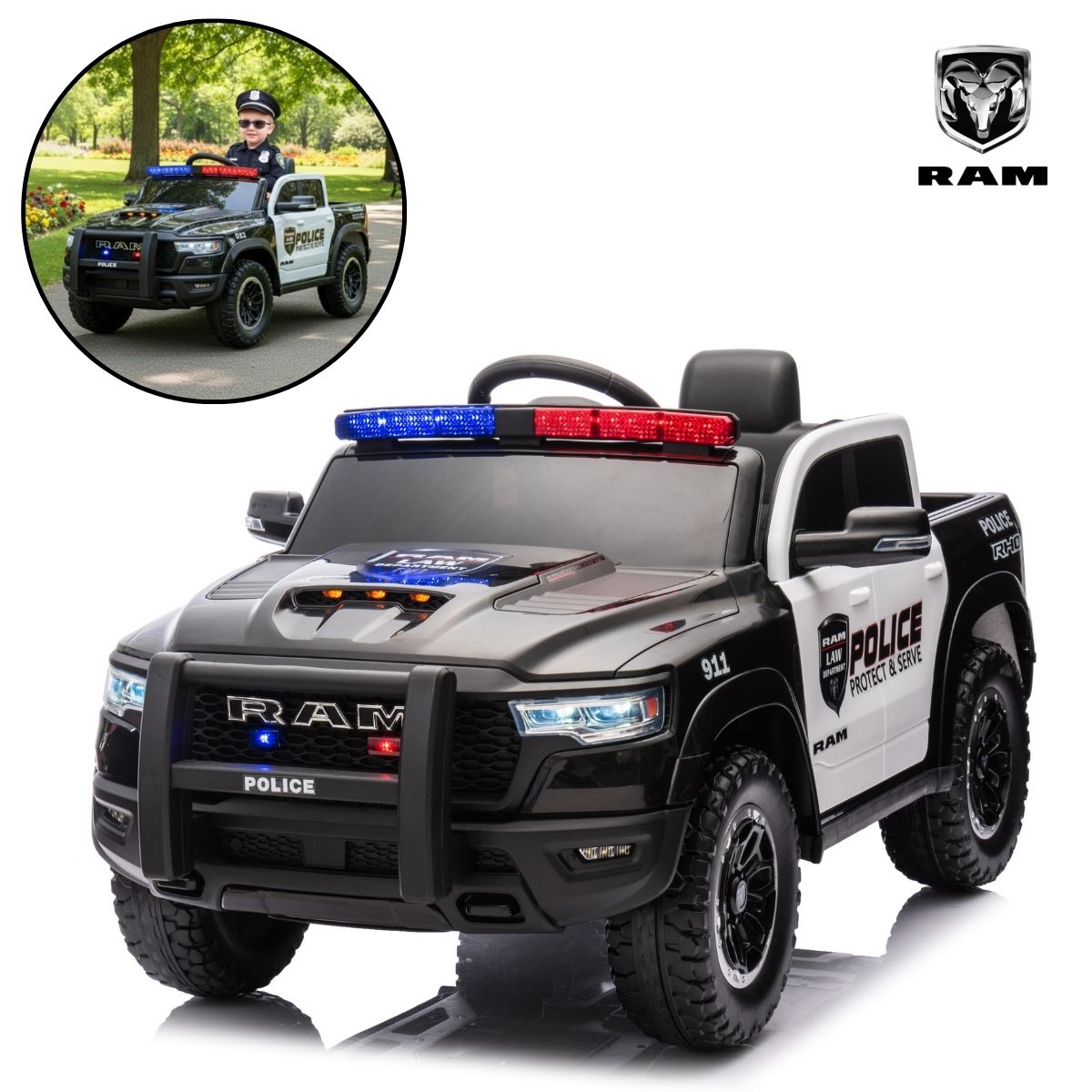 Mini Carro Elétrico 12V Licenciado Dodge Ram 1500 RHO Policial – BW426POL