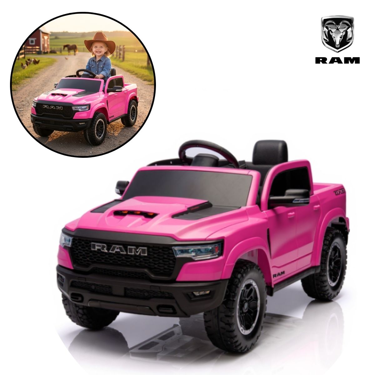 Mini Carro Elétrico 12V Licenciado Dodge Ram 1500 RHO Rosa – BW426RS