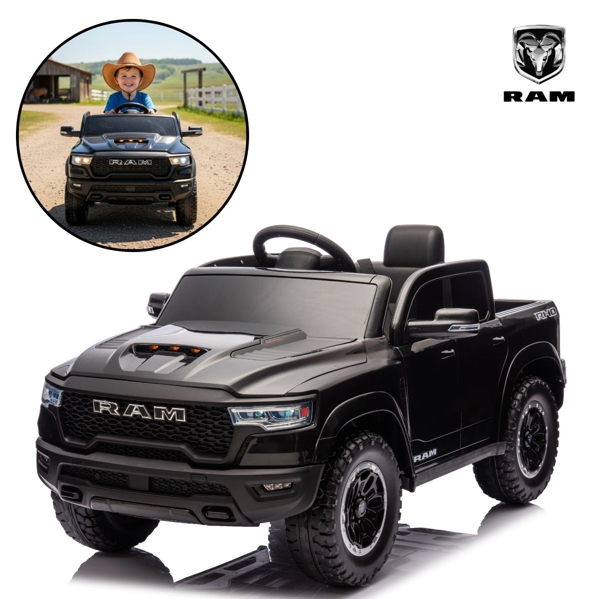 Mini Carro Elétrico 12V Licenciado Dodge Ram 1500 RHO Preto – BW426PT