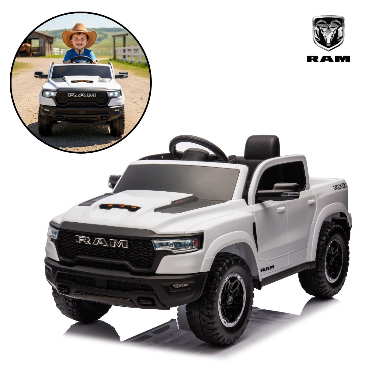 Mini Carro Elétrico 12V Licenciado Dodge Ram 1500 RHO Branco – BW427BR