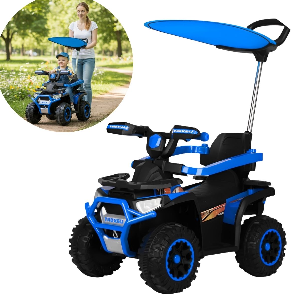 Quadriciclo Elétrico 6V Com Empurrador E Cobertura Azul – BW375AZ