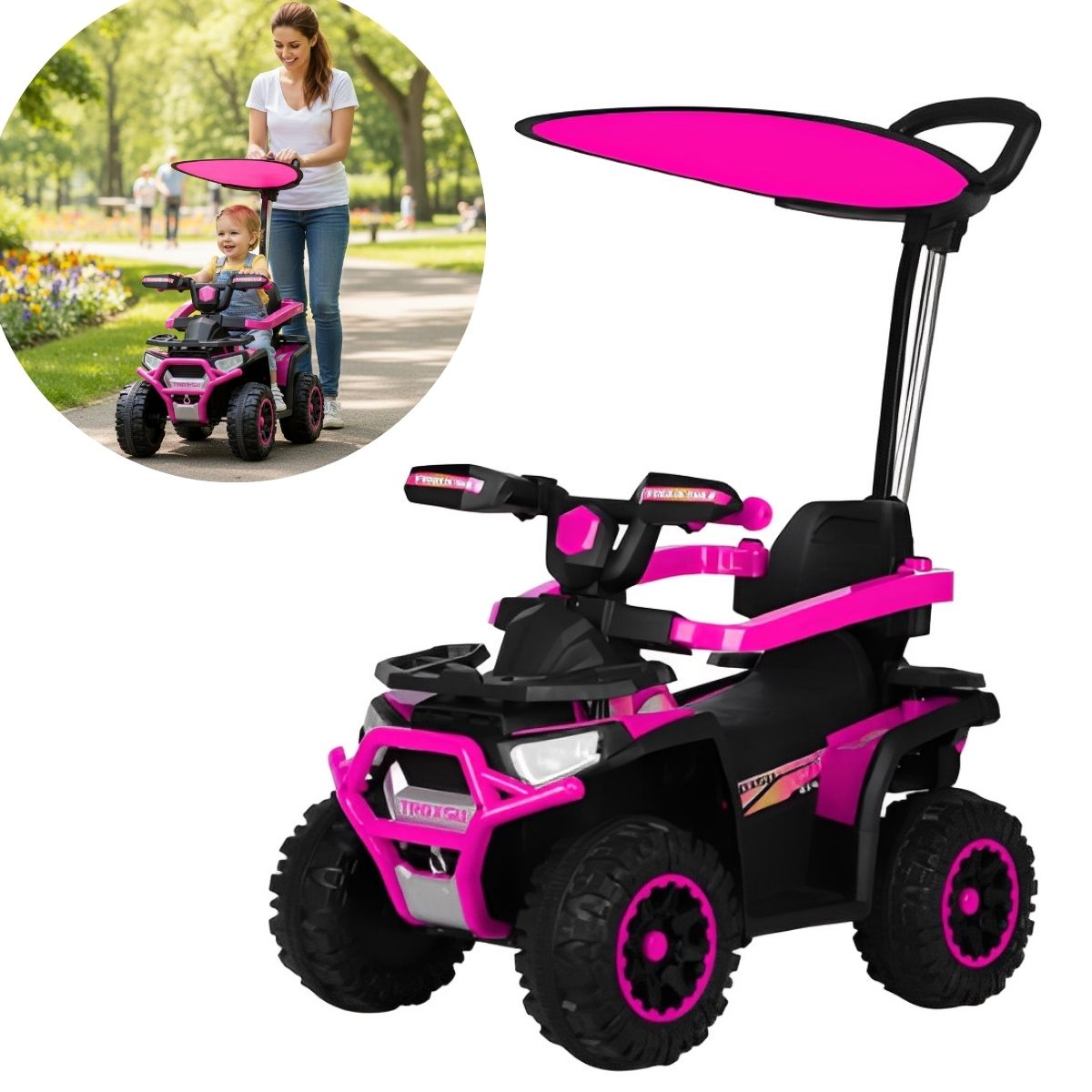 Quadriciclo Elétrico 6V Com Empurrador E Cobertura Rosa- BW375RS