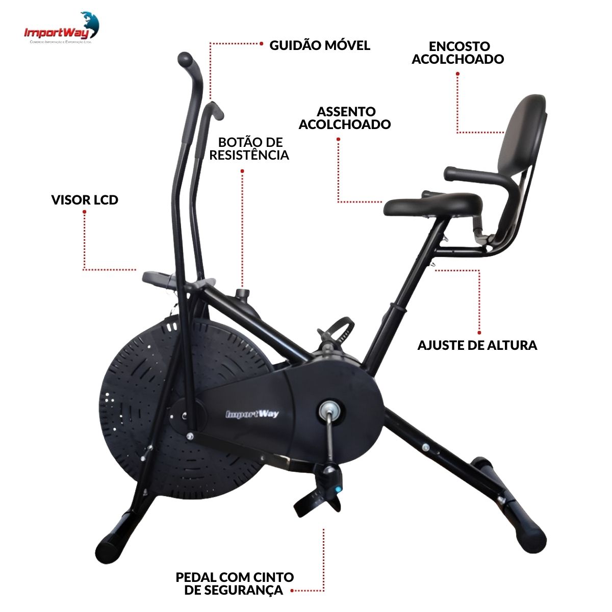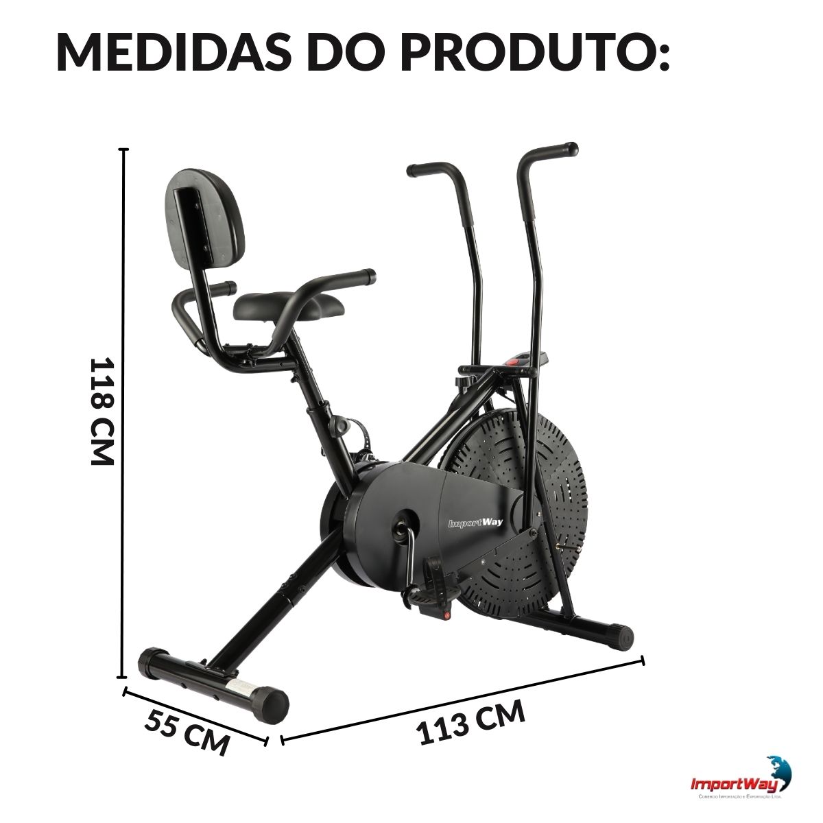 Air Bike Com Encosto Assento Ajustável Até 150kg Importway