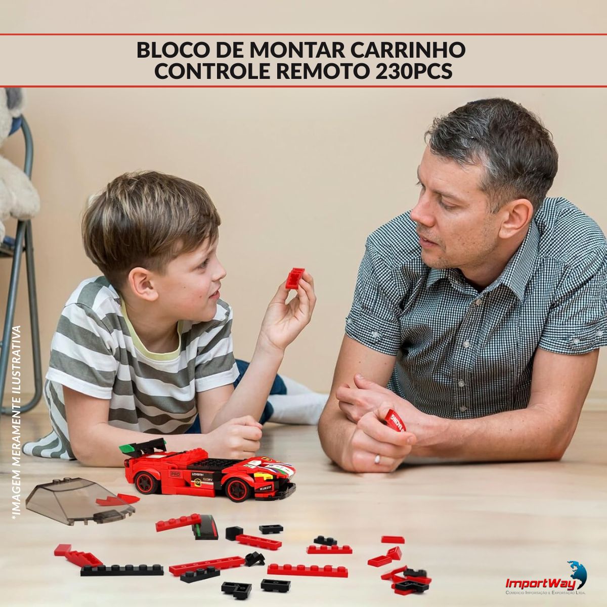 Blocos De Montar Carrinho C/ Controle Remoto 230 Peças ImportWay