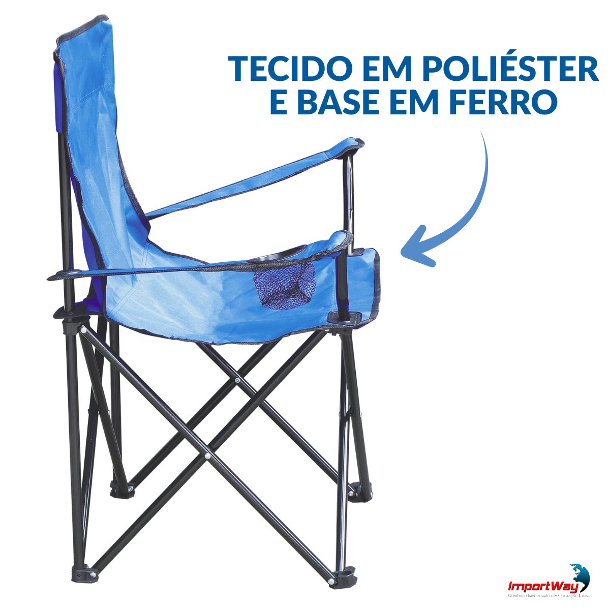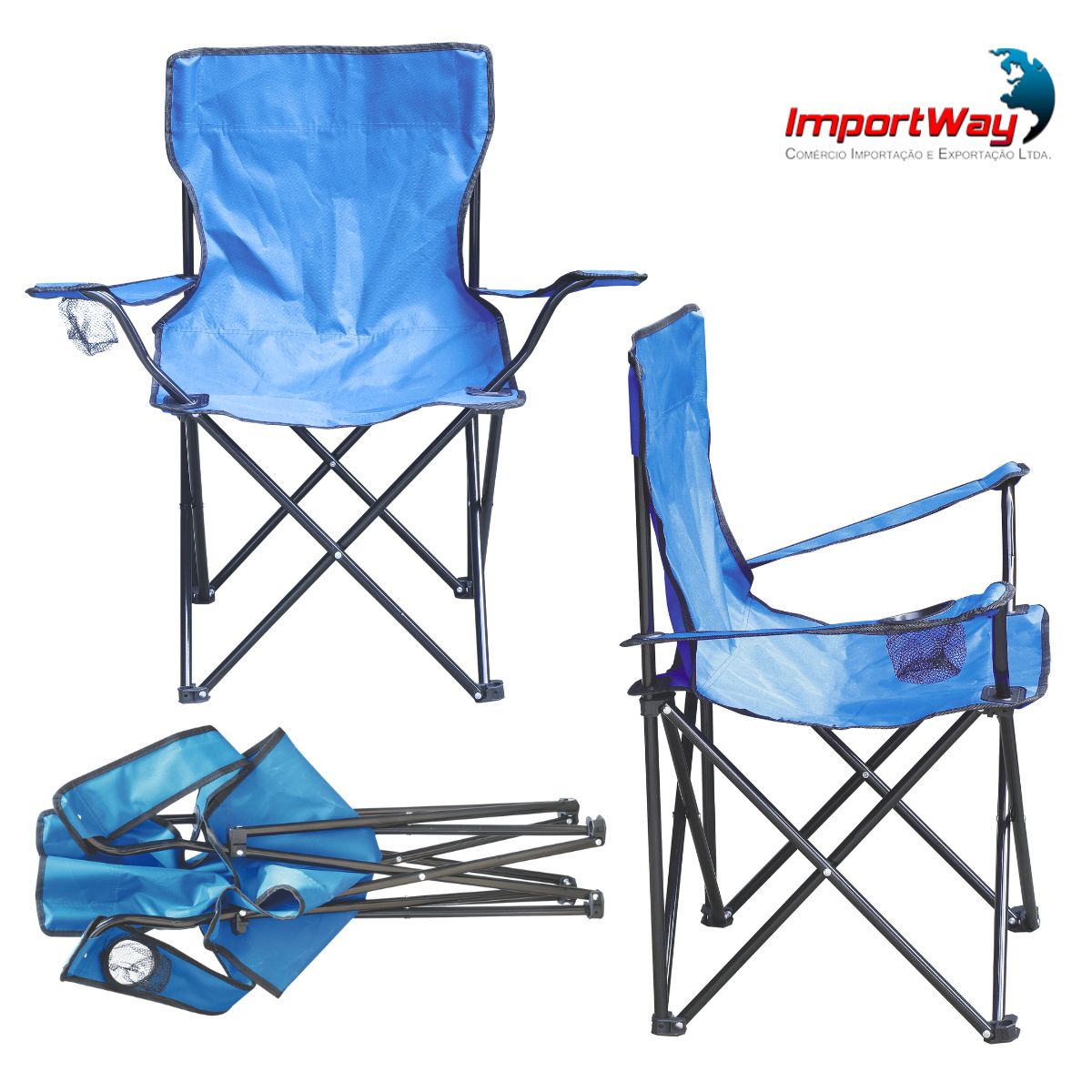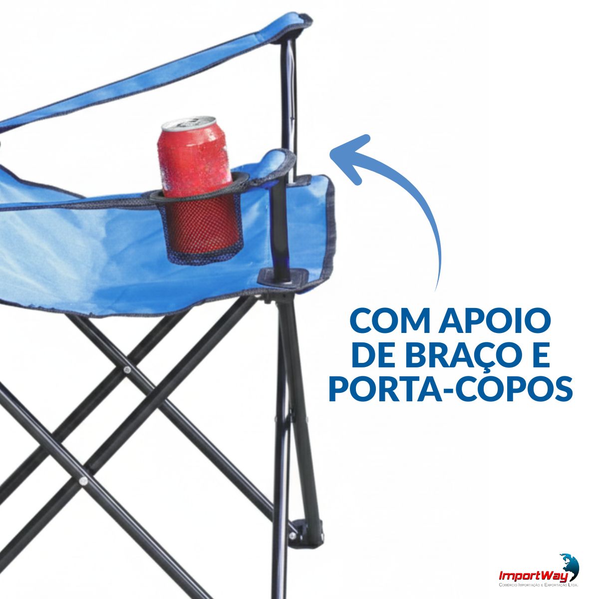 Cadeira Camping Com Apoio De Braço E Porta Copos Azul Importway