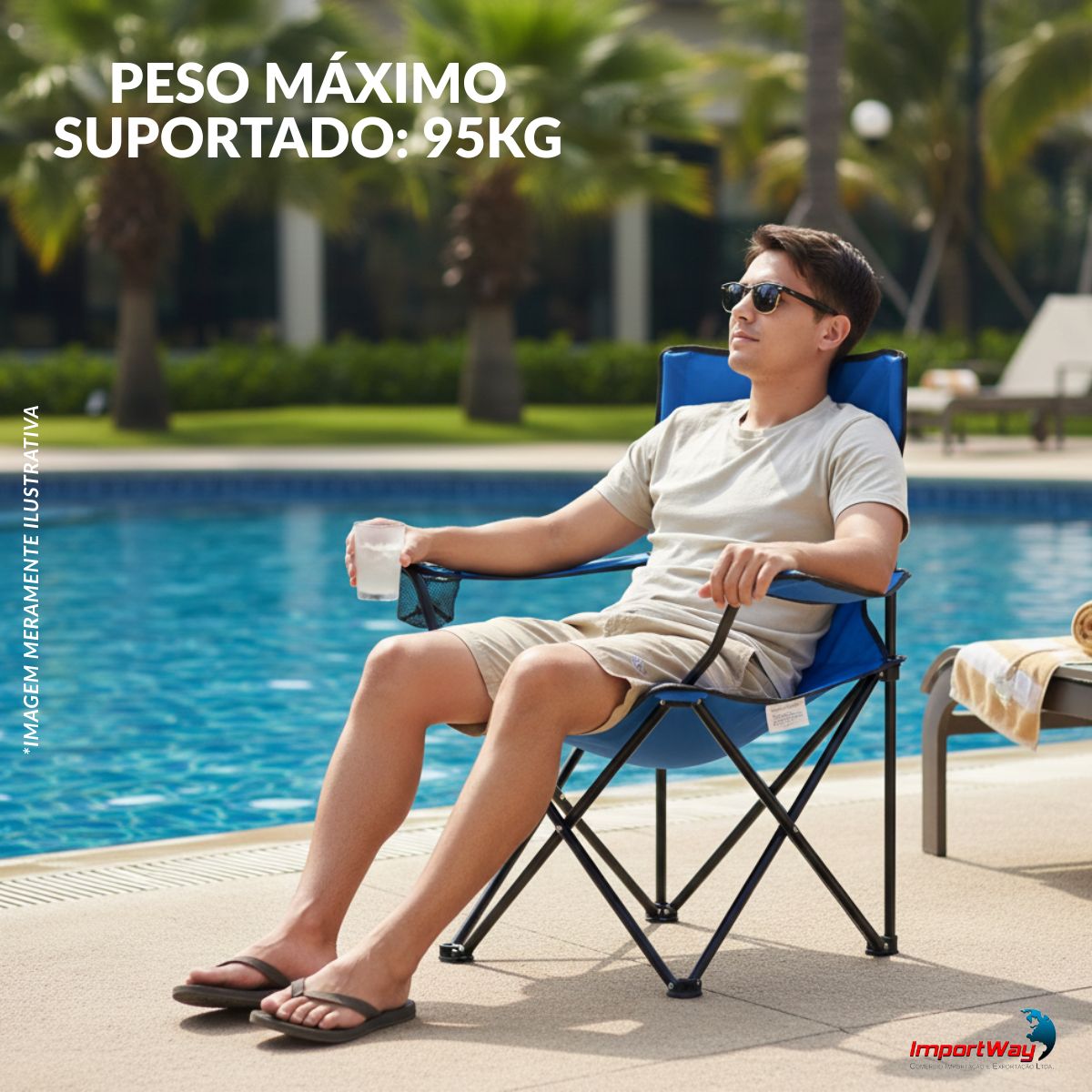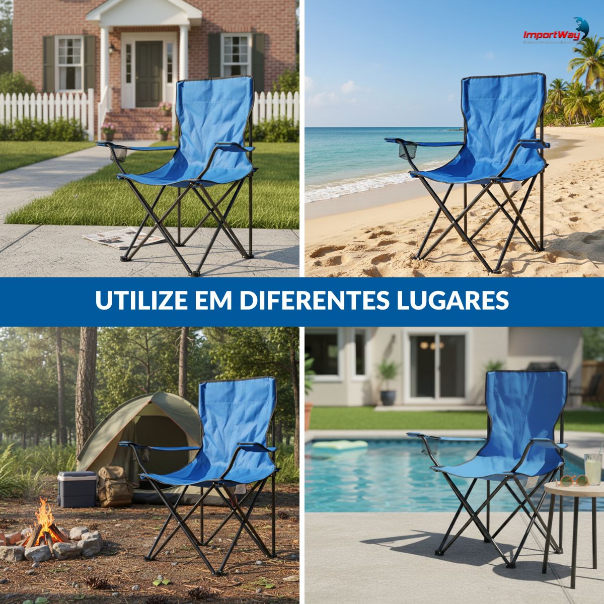 A Cadeira de Camping Importway é ideal para usar em acampamentos, pescarias, praias, piqueniques ou até mesmo no quintal. Fabricada com estrutura resistente em aço e tecido durável, ela oferece estabilidade e conforto para qualquer momento de descanso.