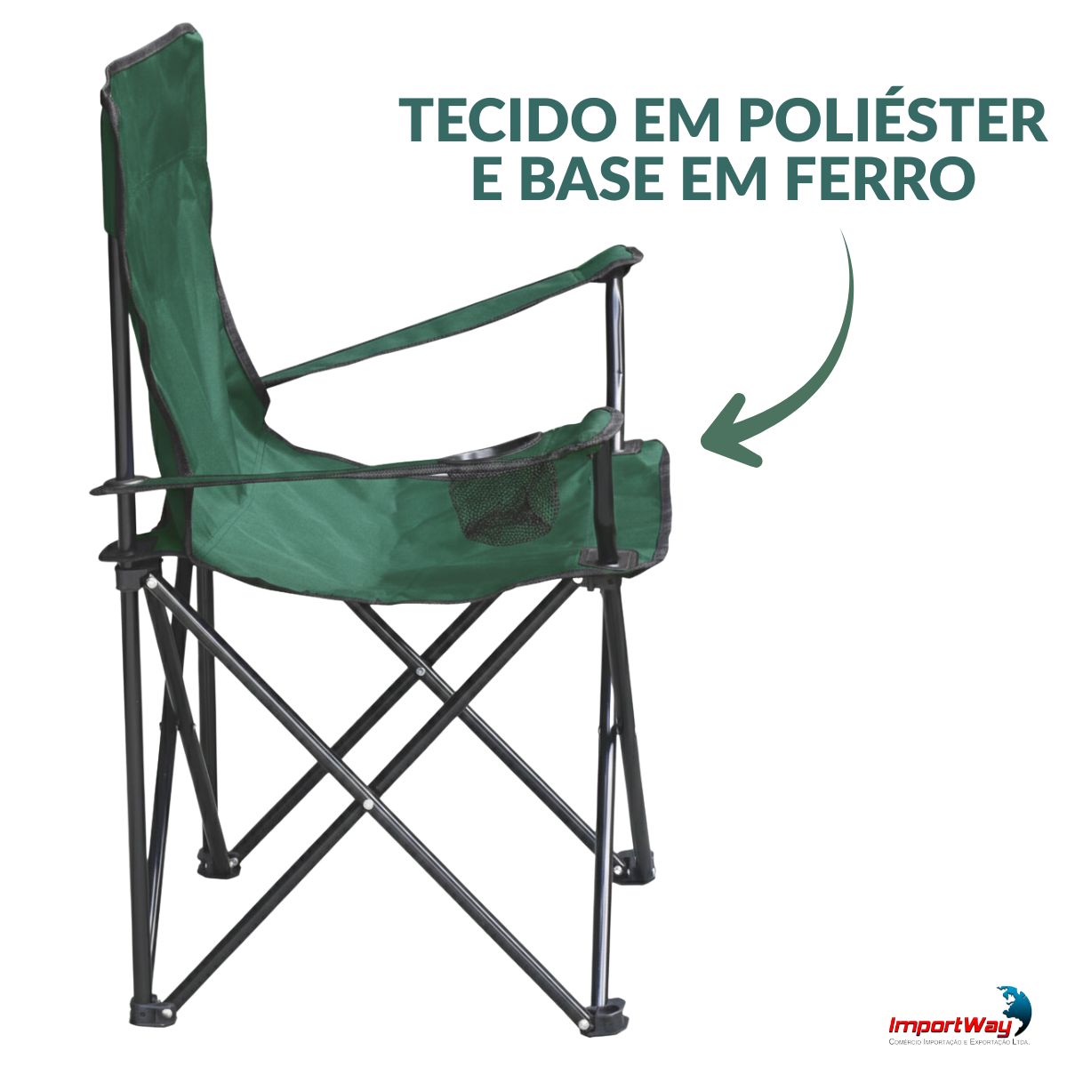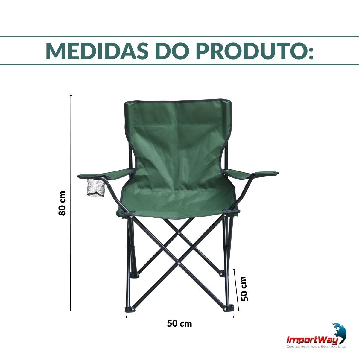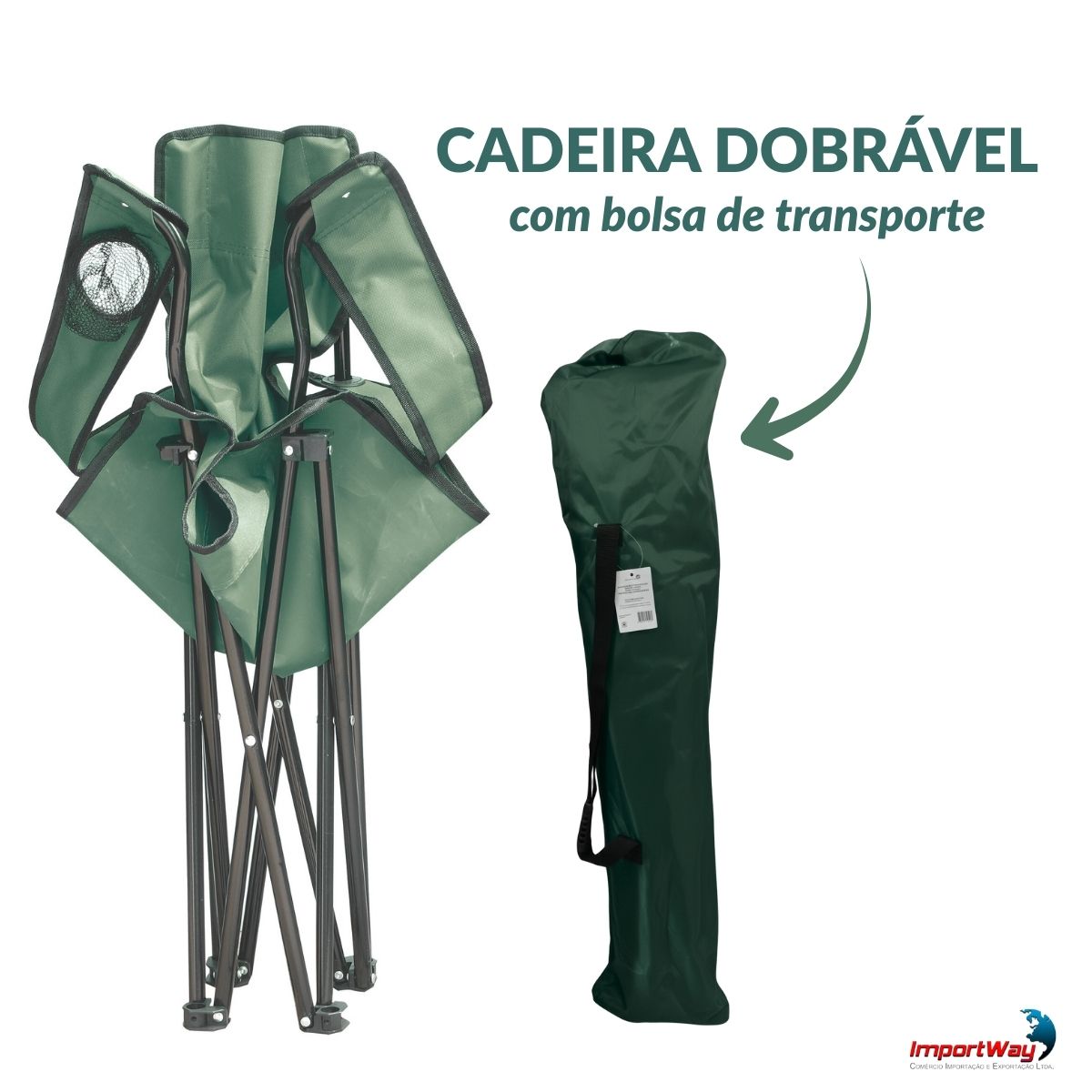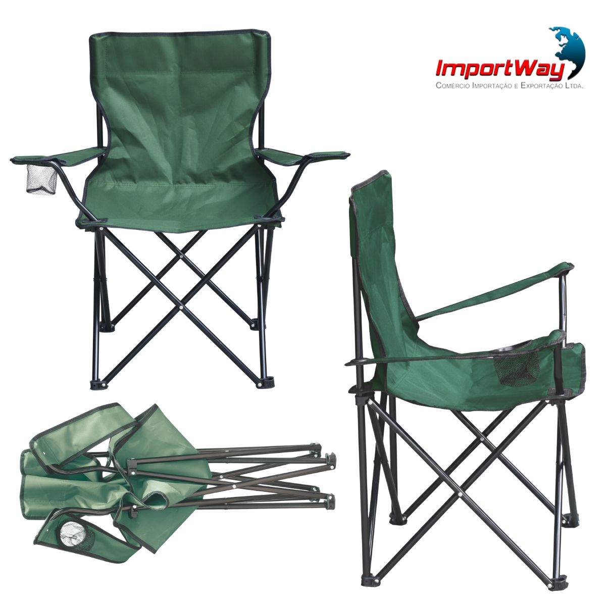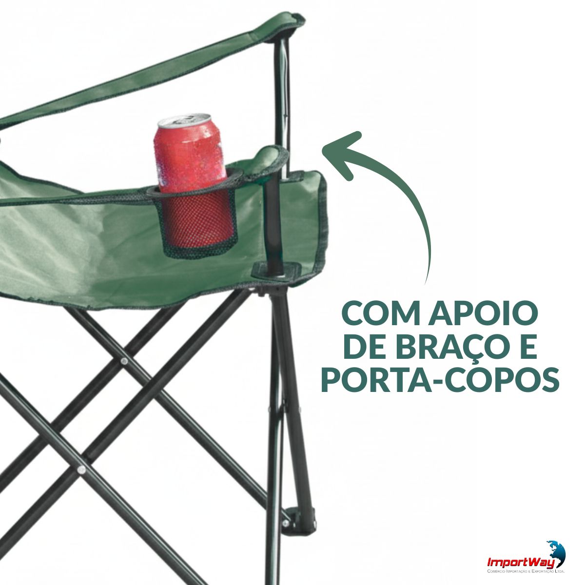 Cadeira Camping Com Apoio De Braço E Porta Copos Verde Importway
