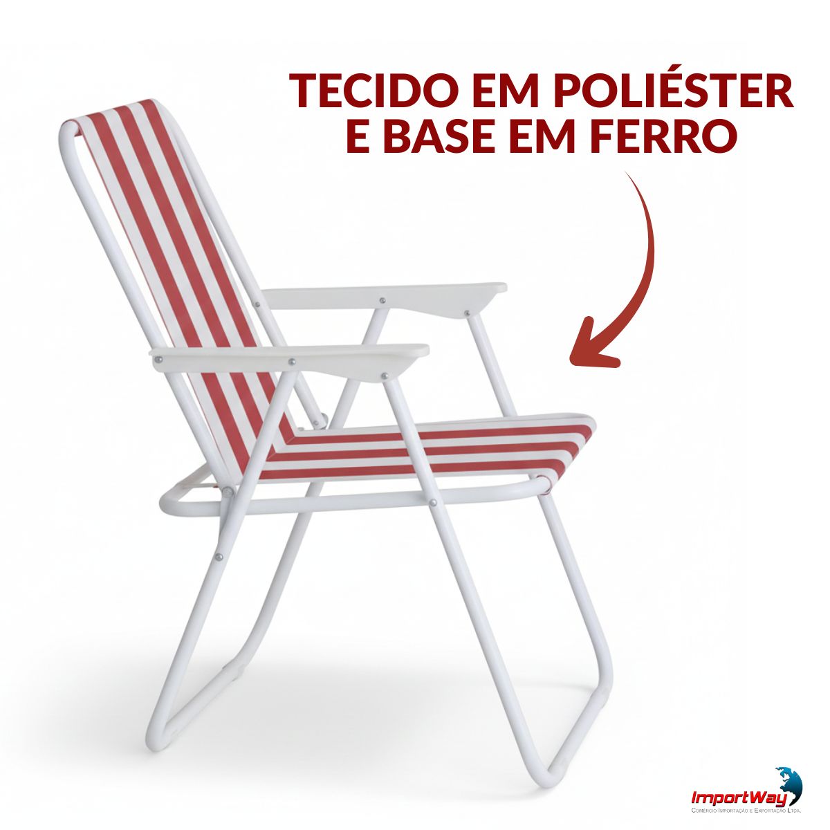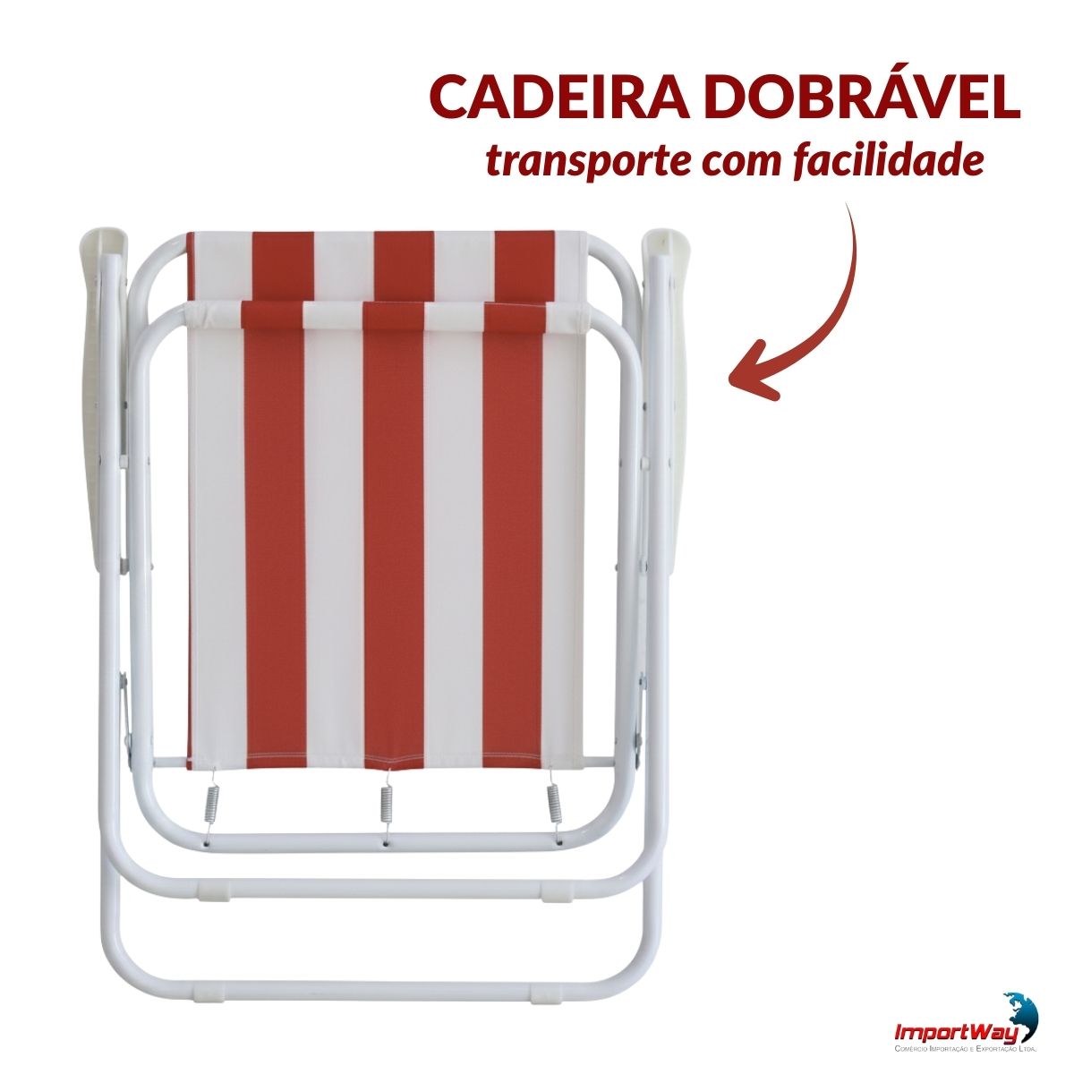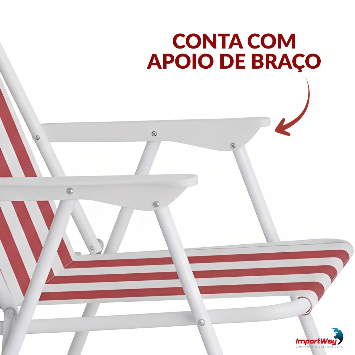 Cadeira De Praia Dobrável Ferro Branco E Vermelho C/ Apoio Braço Importway