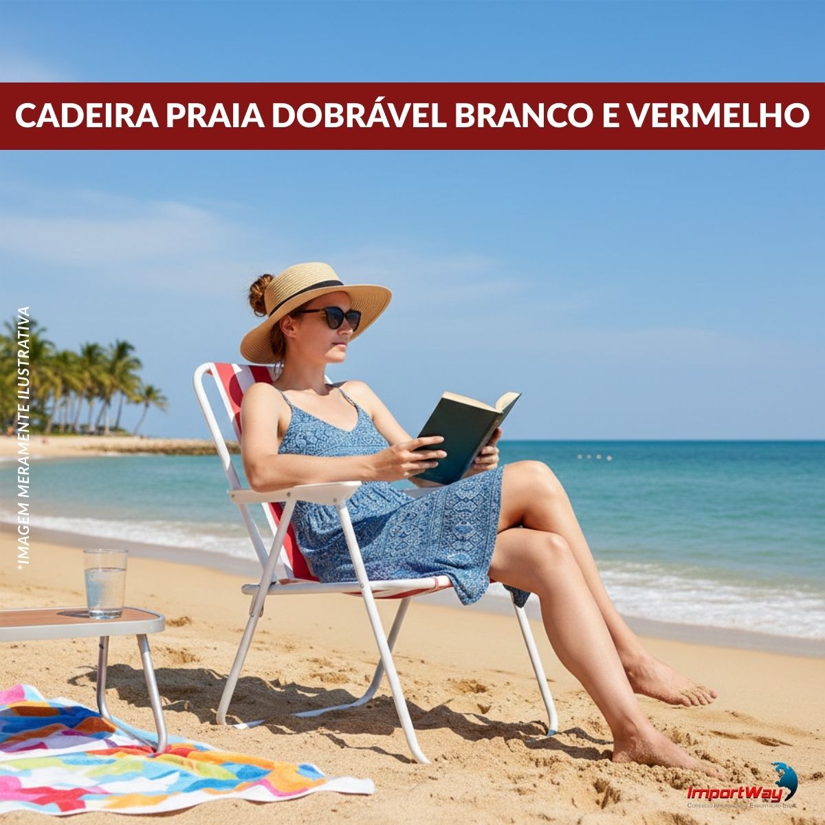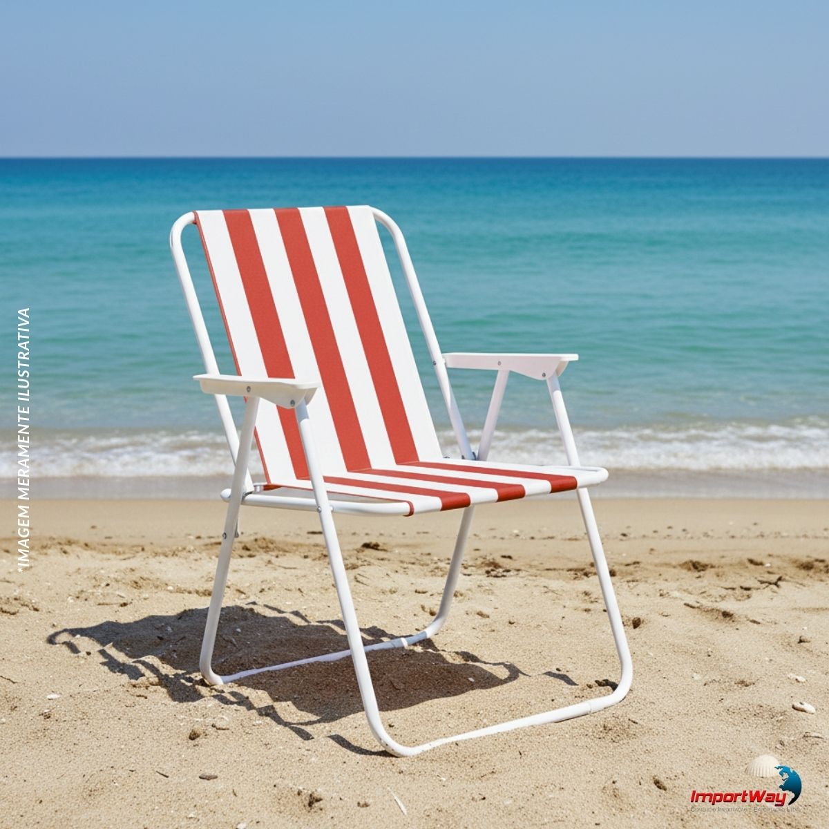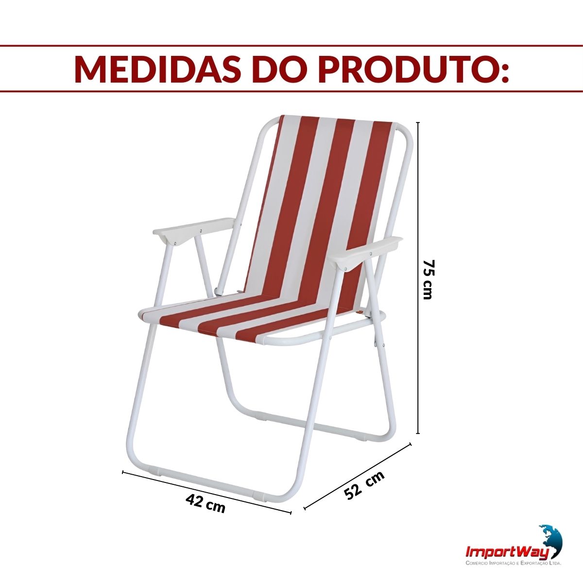 Cadeira De Praia Dobrável Ferro Branco E Vermelho C/ Apoio Braço Importway