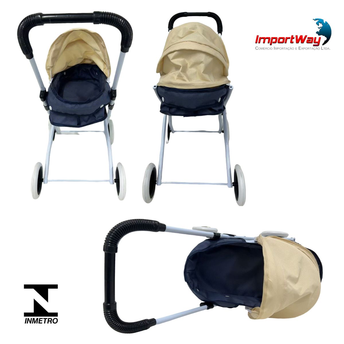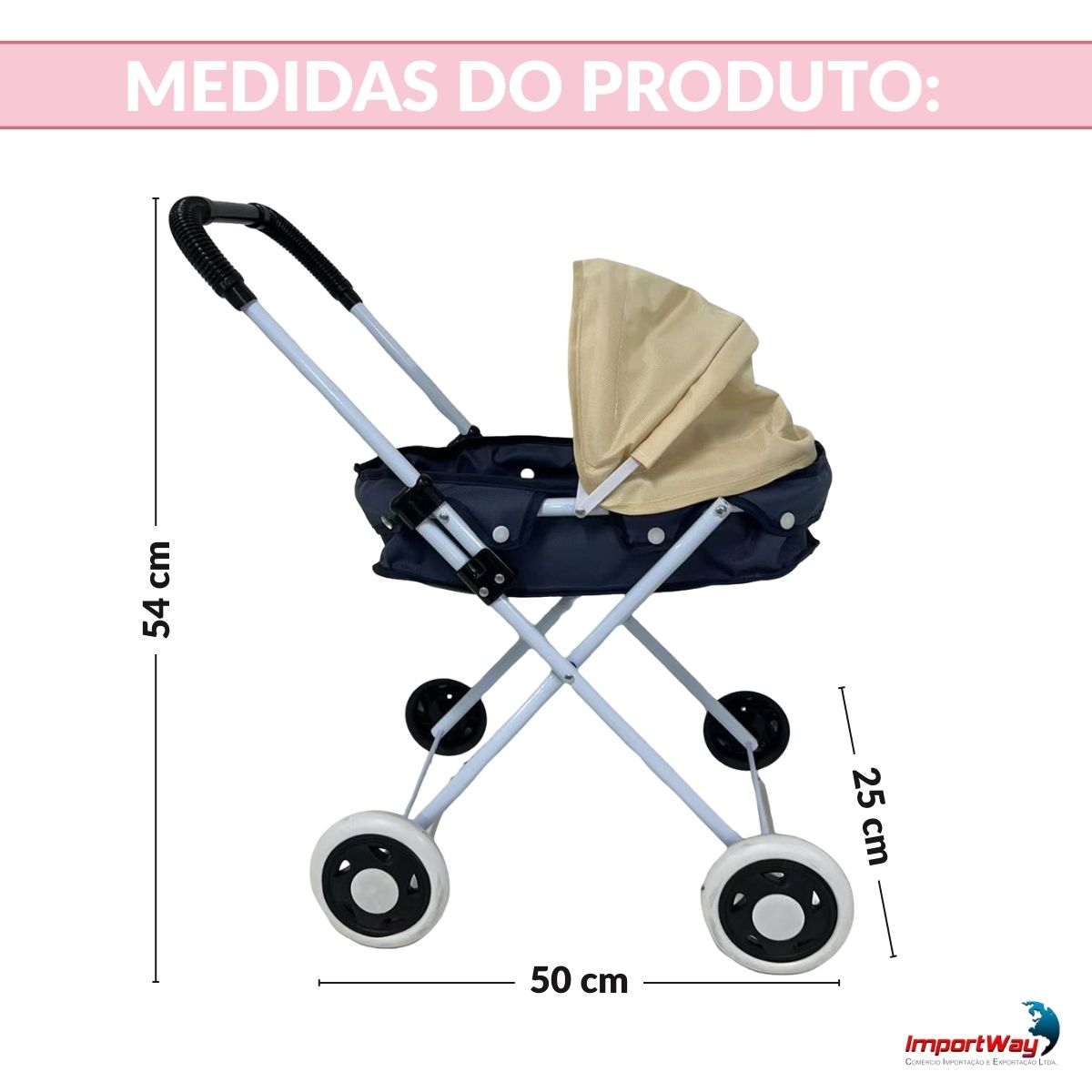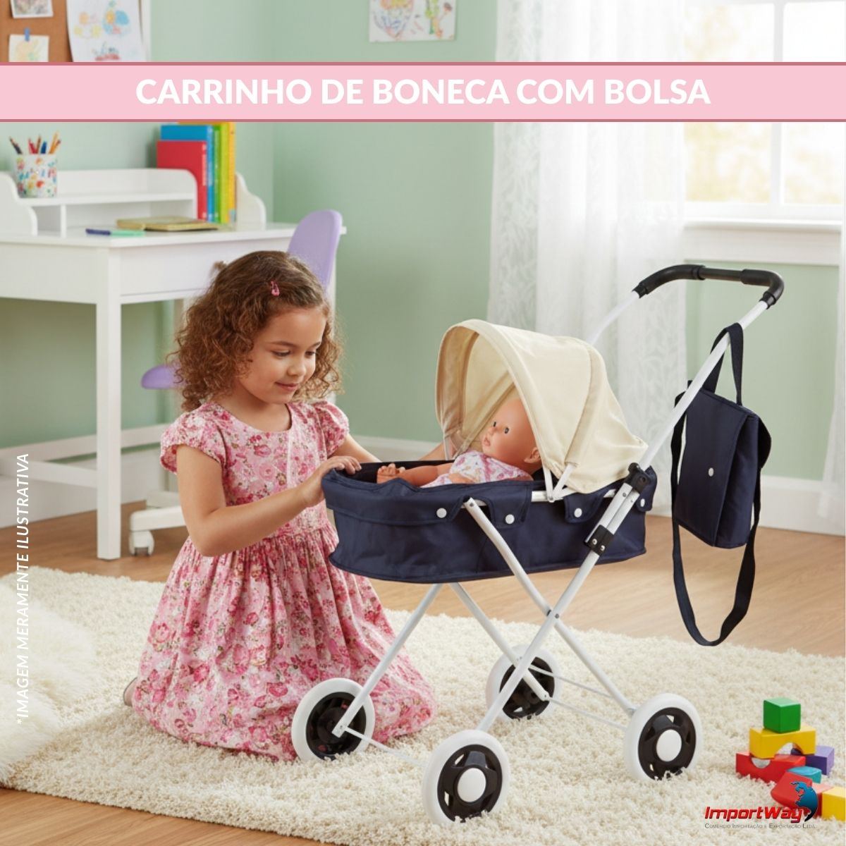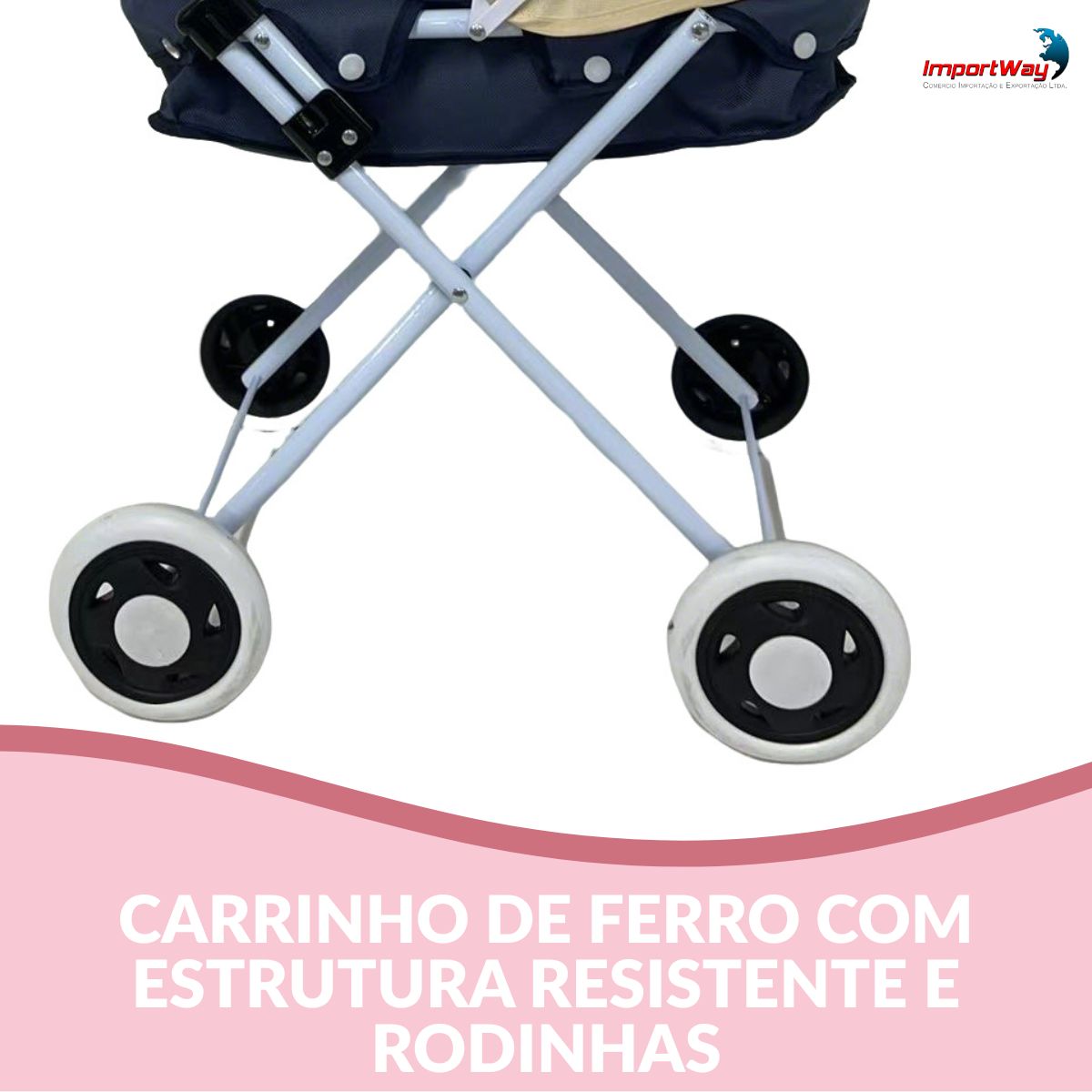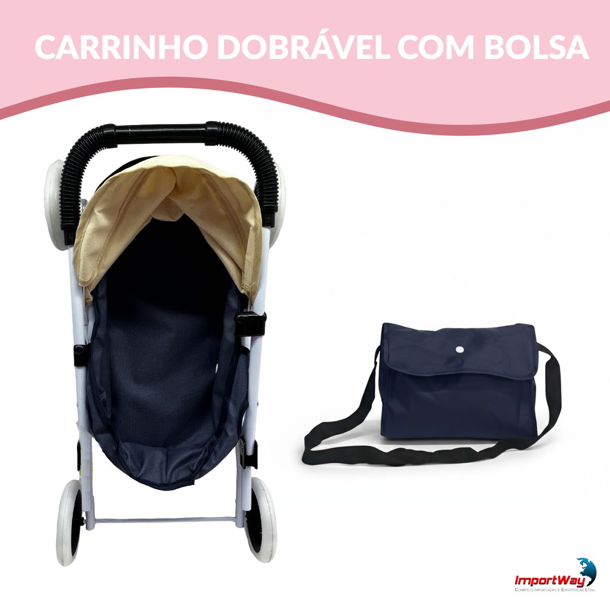 Carrinho de Boneca Infantil Resistente Com Bolsa Azul ImportWay