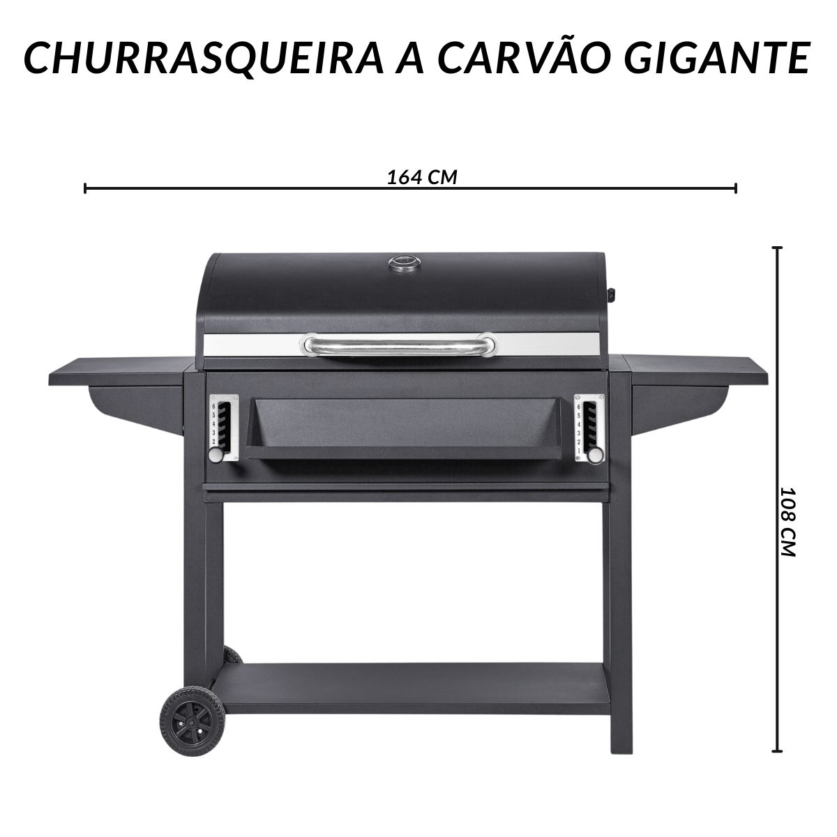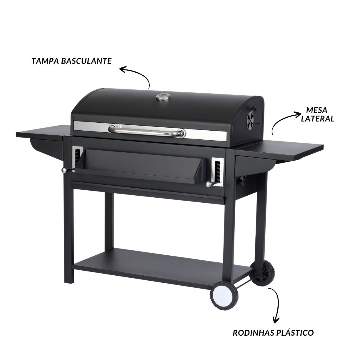 Churrasqueira A Carvão Gigante Com 2 Mesas Laterais Casa E Jardim Importway Preta