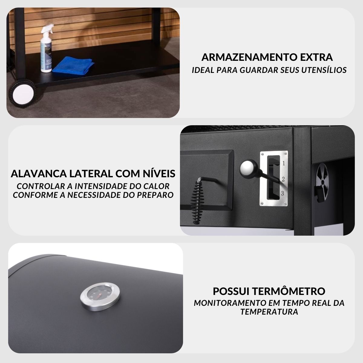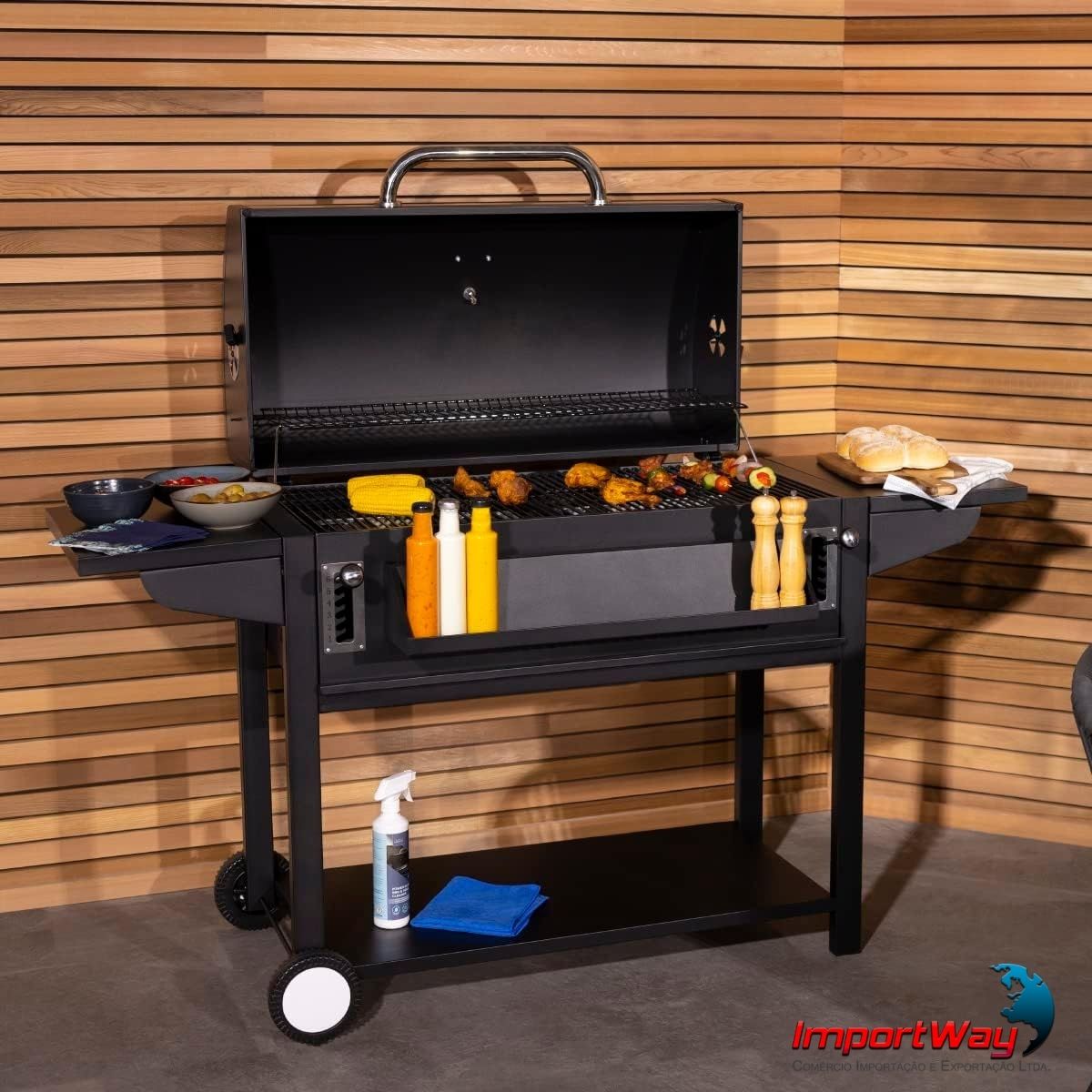 A Churrasqueira a Carvão da Importway é uma ótima opção para a realização de eventos e momentos únicos de degustação e lazer com a família, pois possui rapidez para servir e para preparar alimentos grelhados, como carnes, em um processo mais prático e seguro para a sua família.