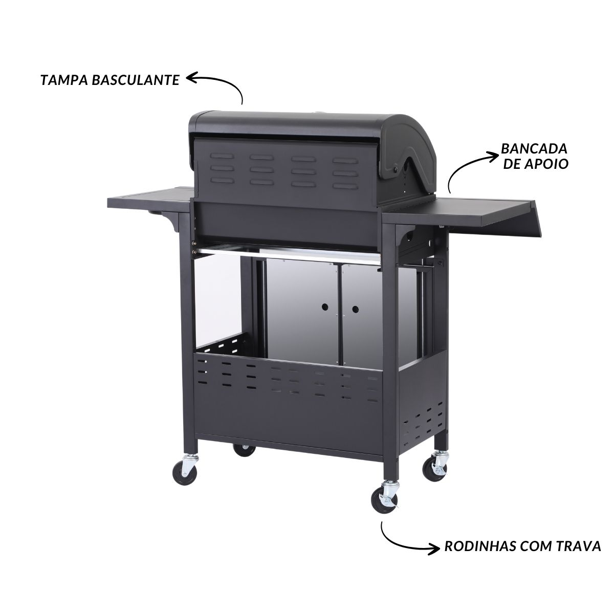 Churrasqueira A Gás 4 Queimadores Kit Com Chapa E Defumador Importway Preto