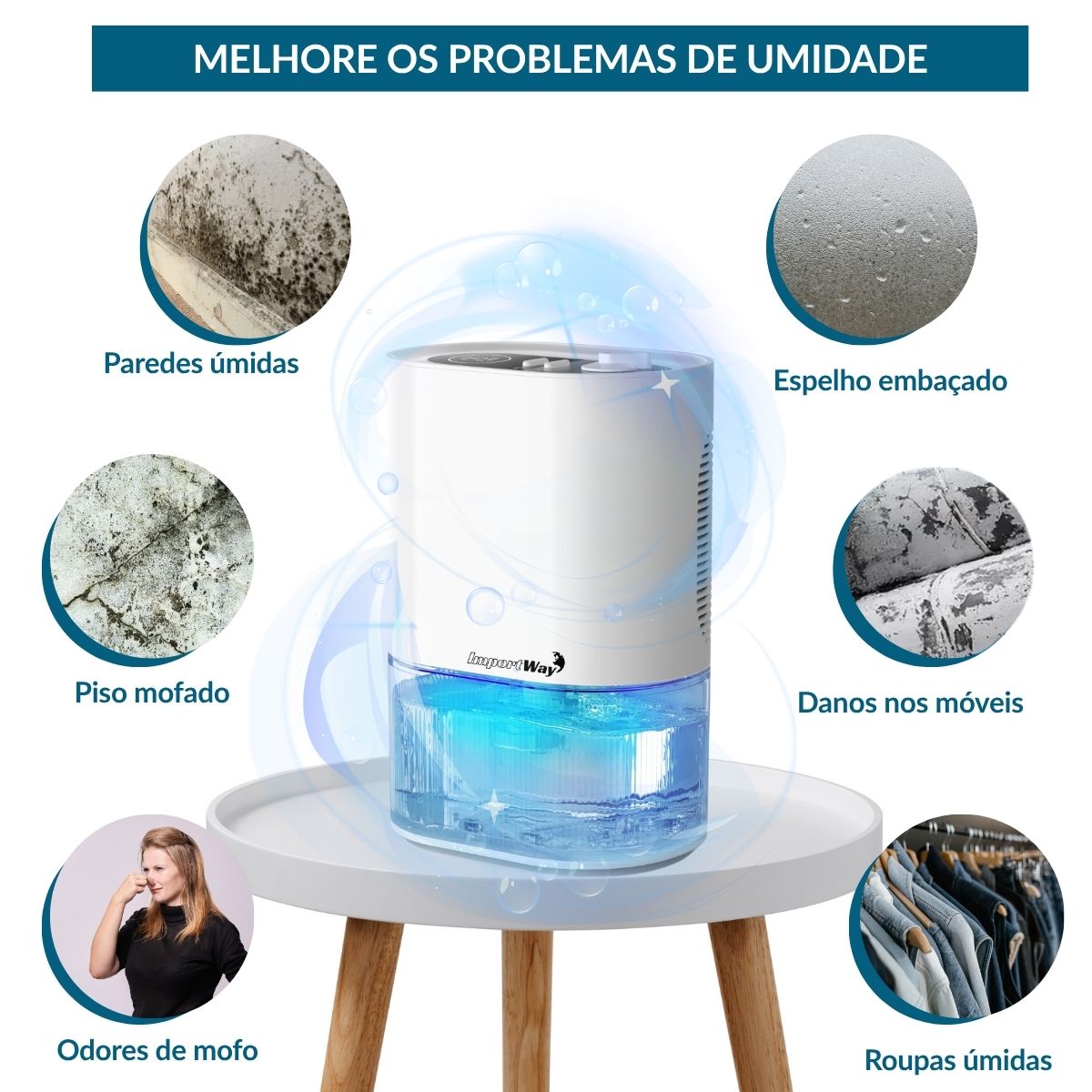 Desumidificador Elétrico de Ar Com LED 2000ml Importway