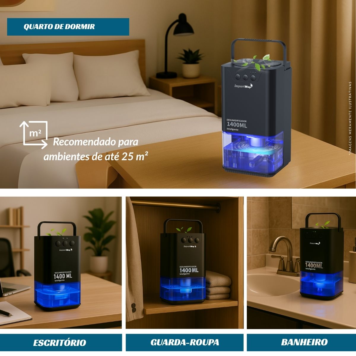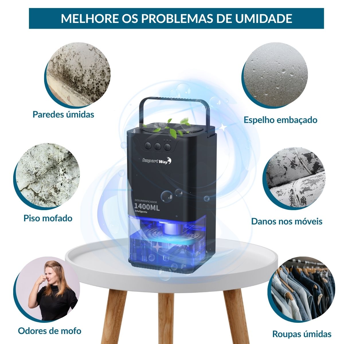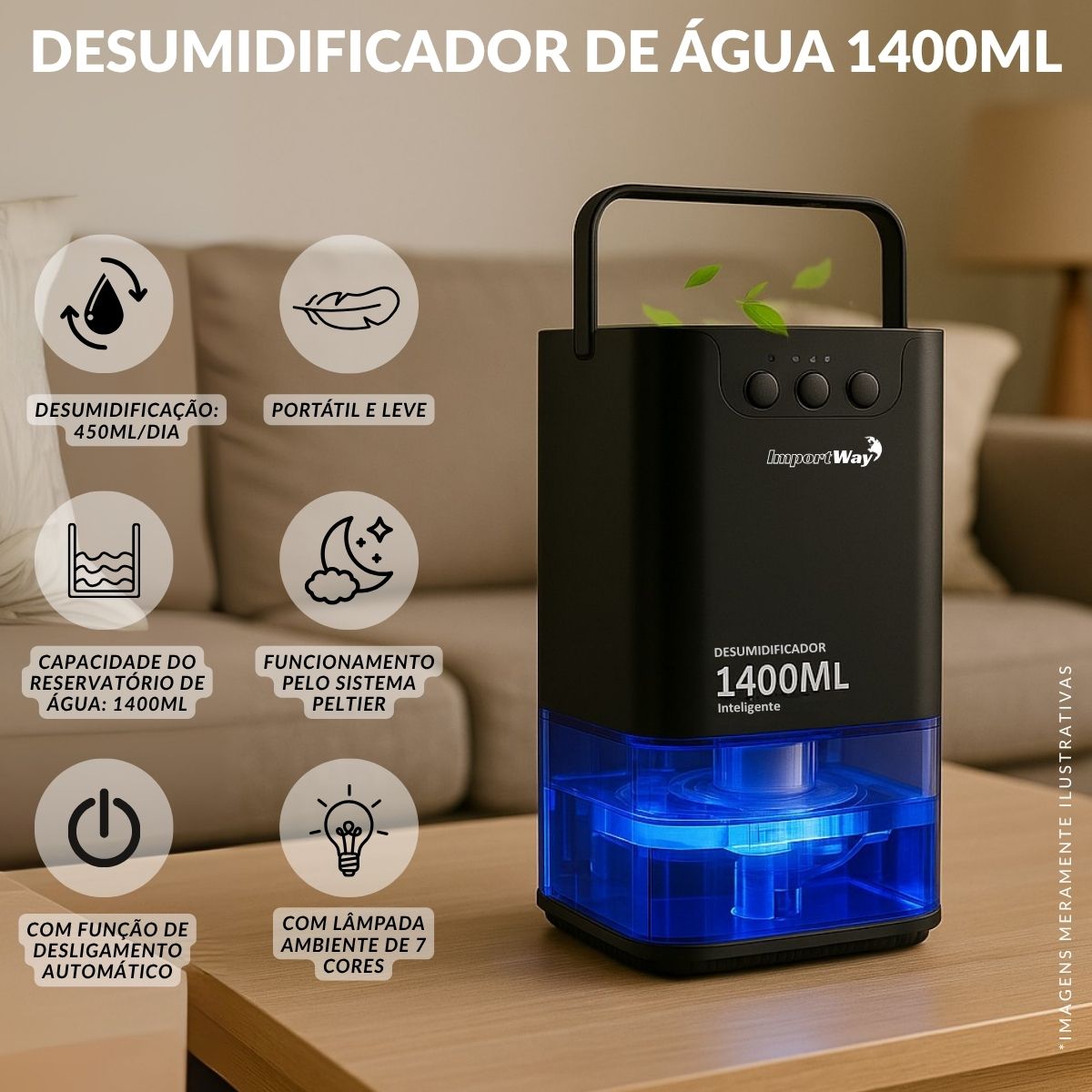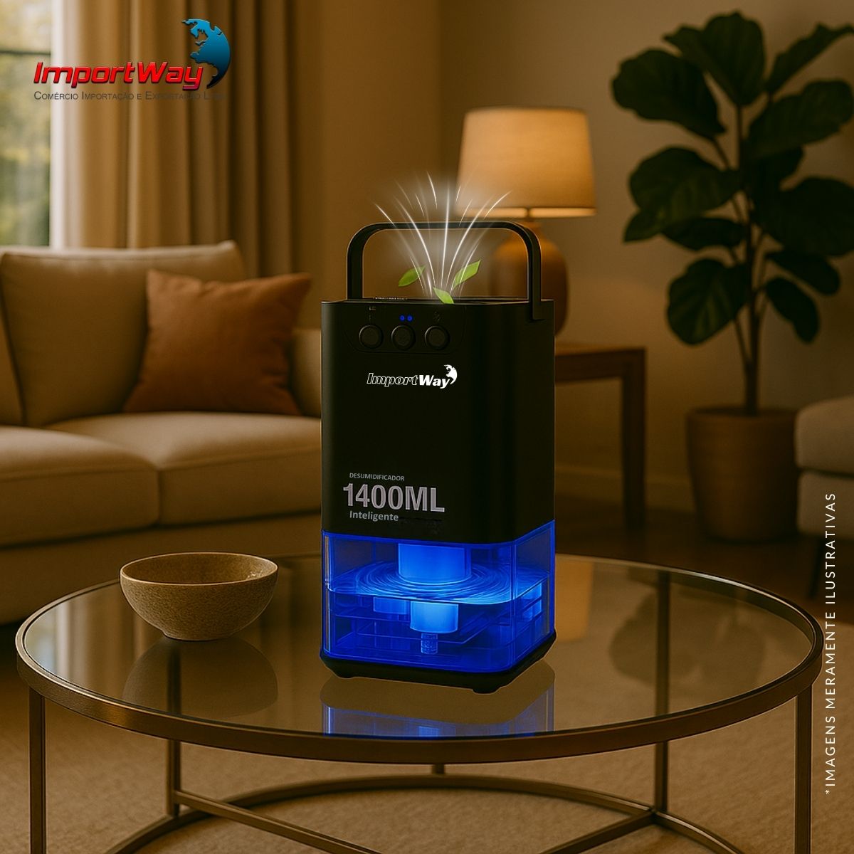 Desumidificador de Ar Com LED 1400ml Preto Importway