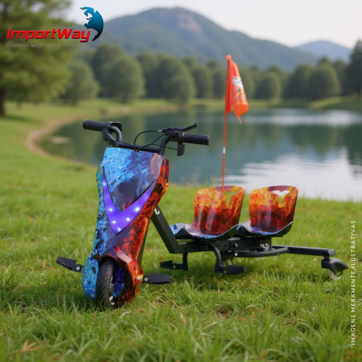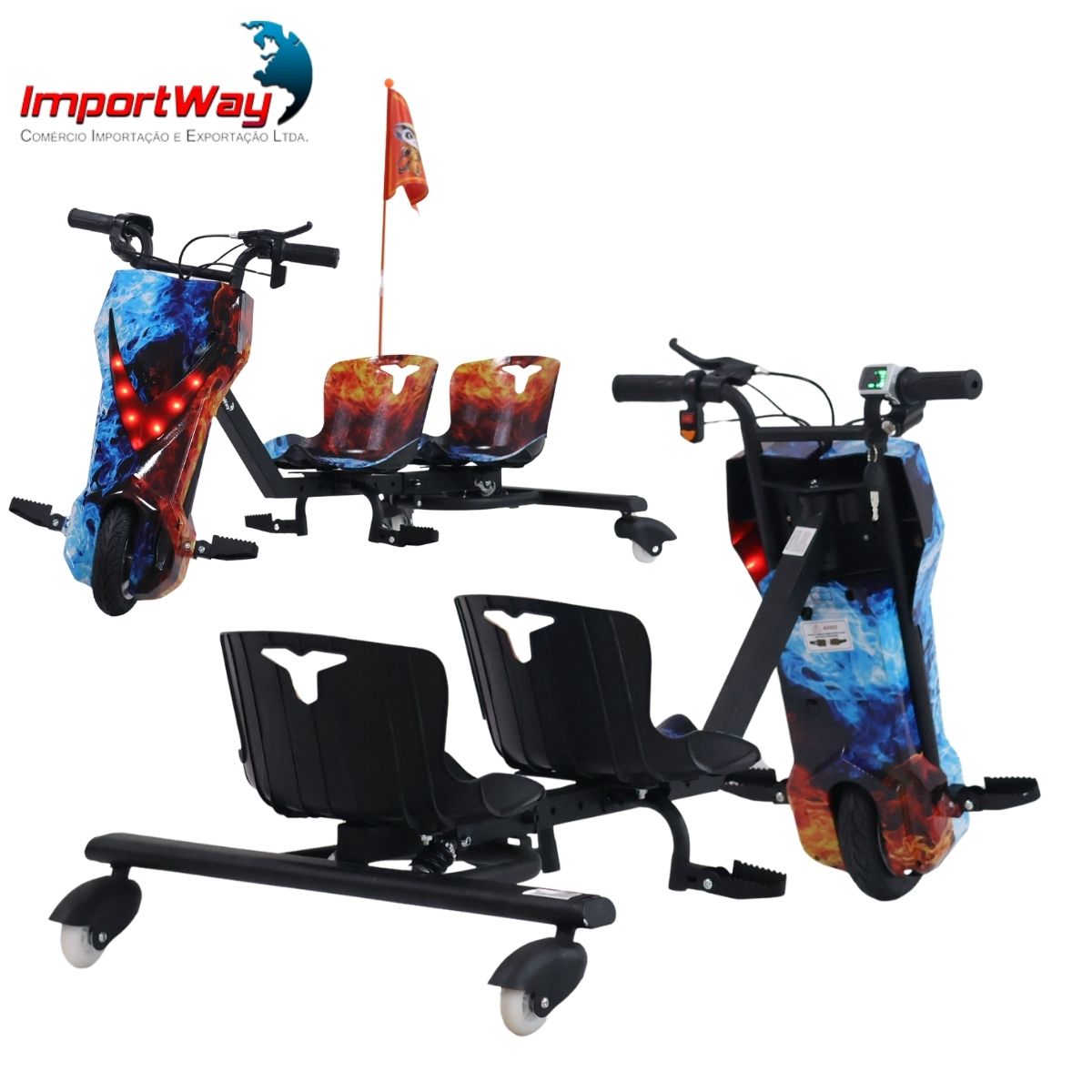 Que tal essa nova sensação que vai conquistar a criançada. O Triciclo Elétrico Drift da Importway possui potência de 250W e velocidade máxima de 25km/hr.