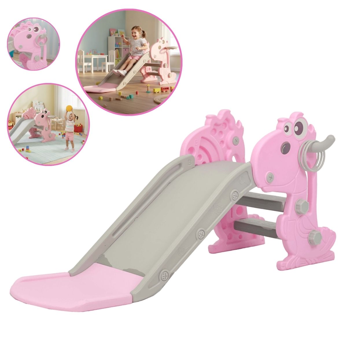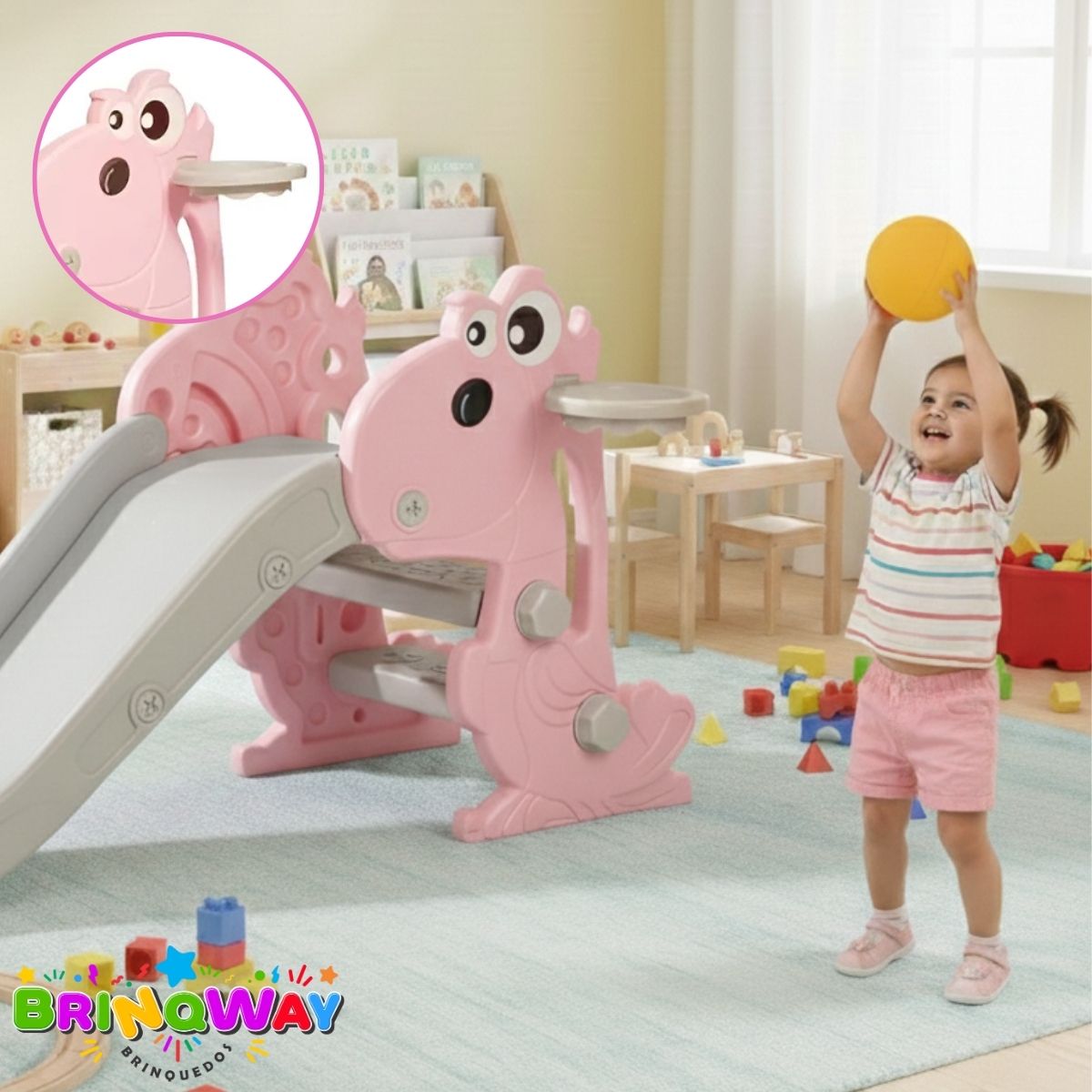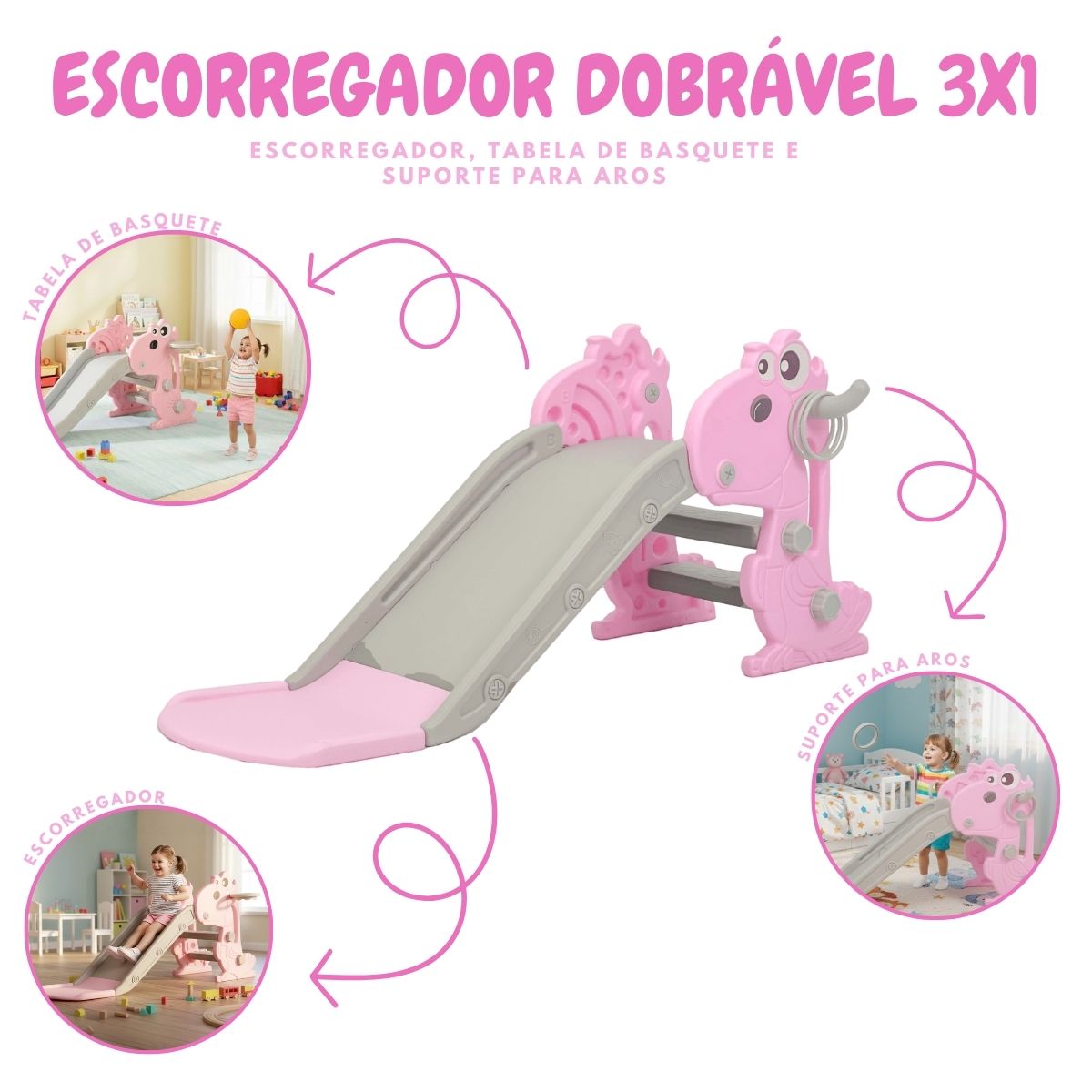 Escorregador Dobrável 3 em 1 Infantil Até 36kg Rosa Importway