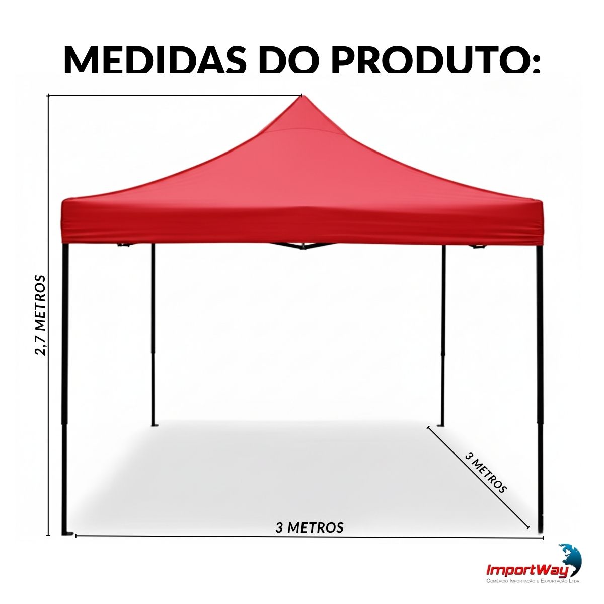 Gazebo Tenda Articulado Praia Camping 3X3m Reforçado Vermelho ImportWay