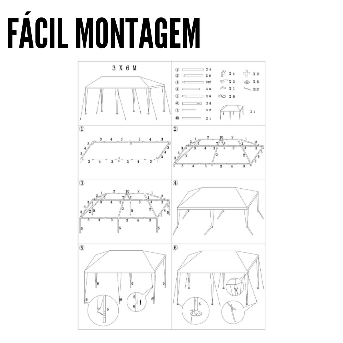 Gazebo Montável 3x6m Importway Branco