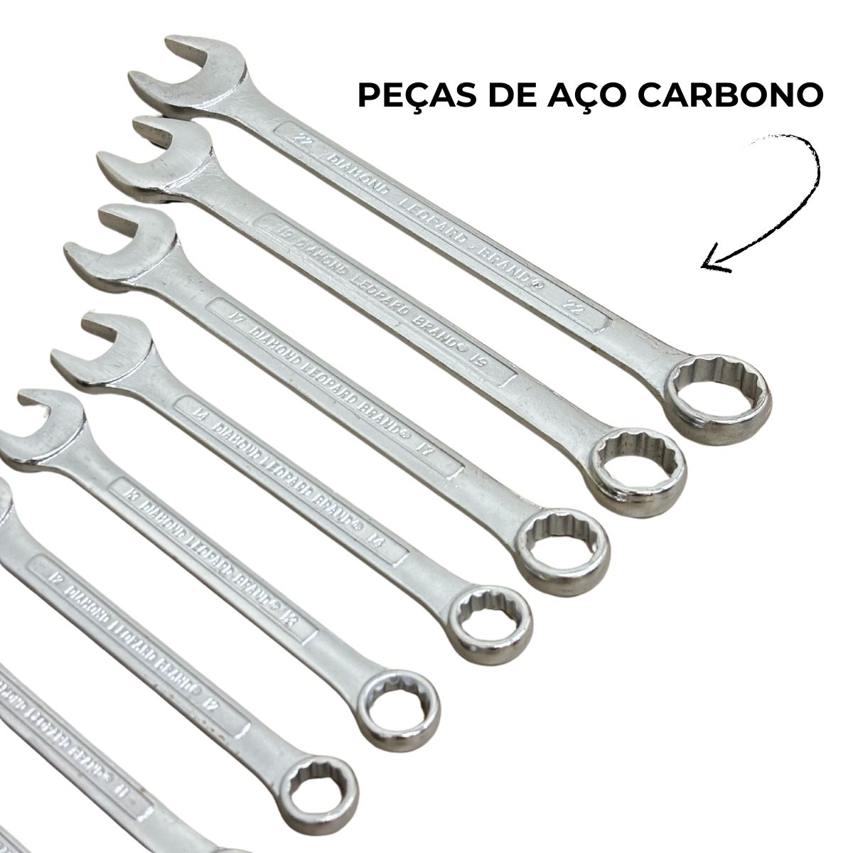 É um conjunto de ferramentas essenciais tanto para profissionais como para hobbystas. Para isso, cada chave do conjunto tem duas extremidades: uma extremidade é fixa e a outra é uma chave estrela. Isso permite que você aperte ou afrouxe parafusos e porcas com mais eficiência.