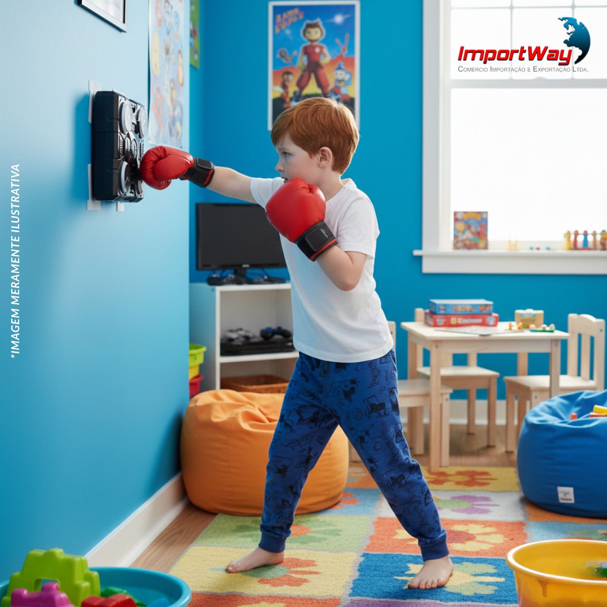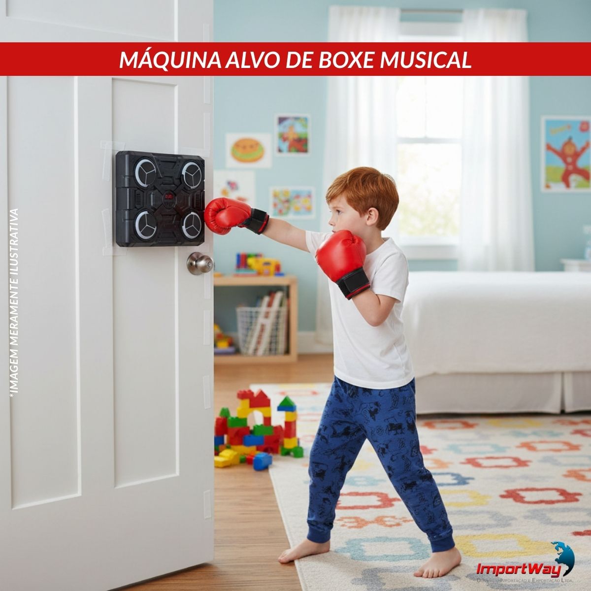 Máquina Alvo De Boxe Musical e Luzes Com Par de Luvas Importway