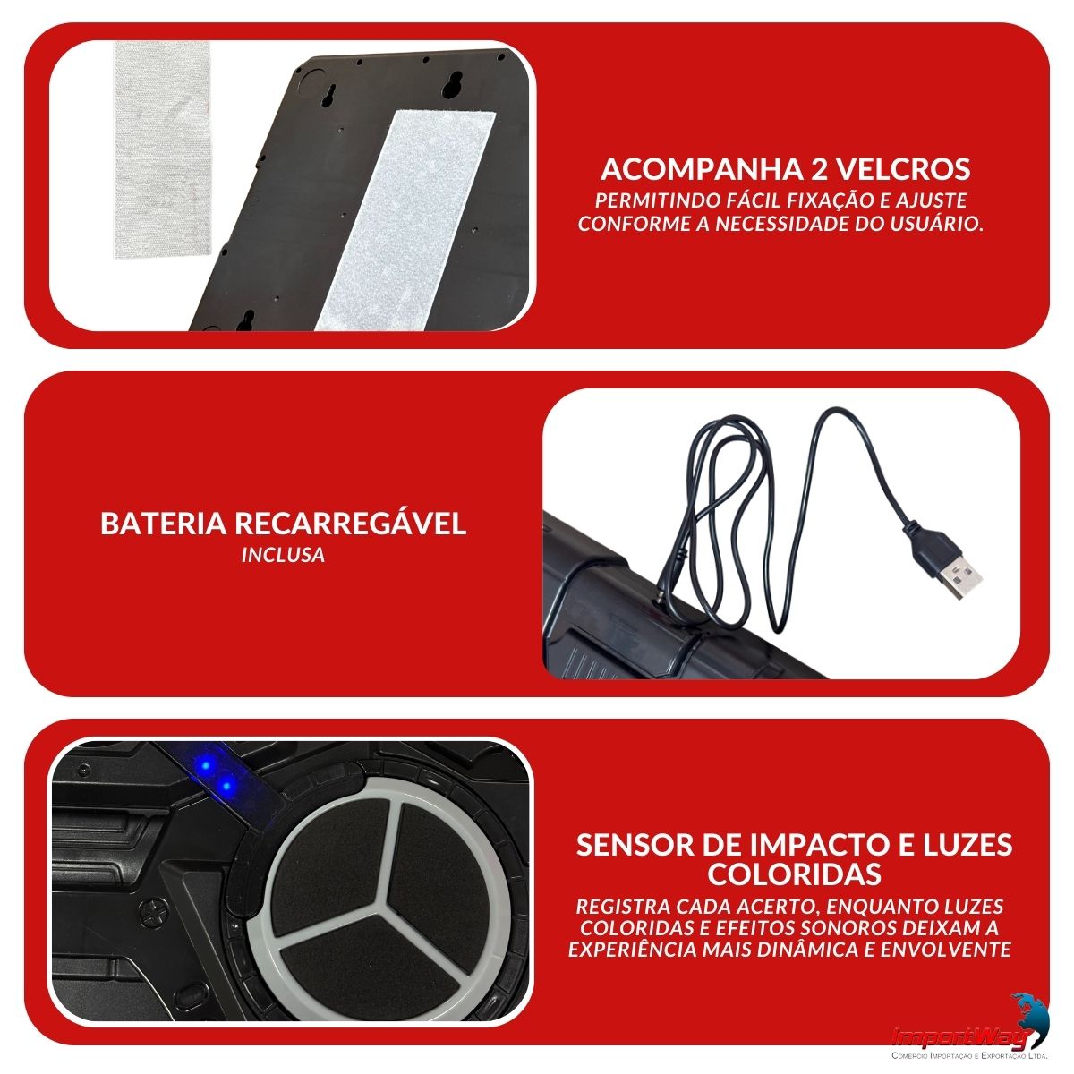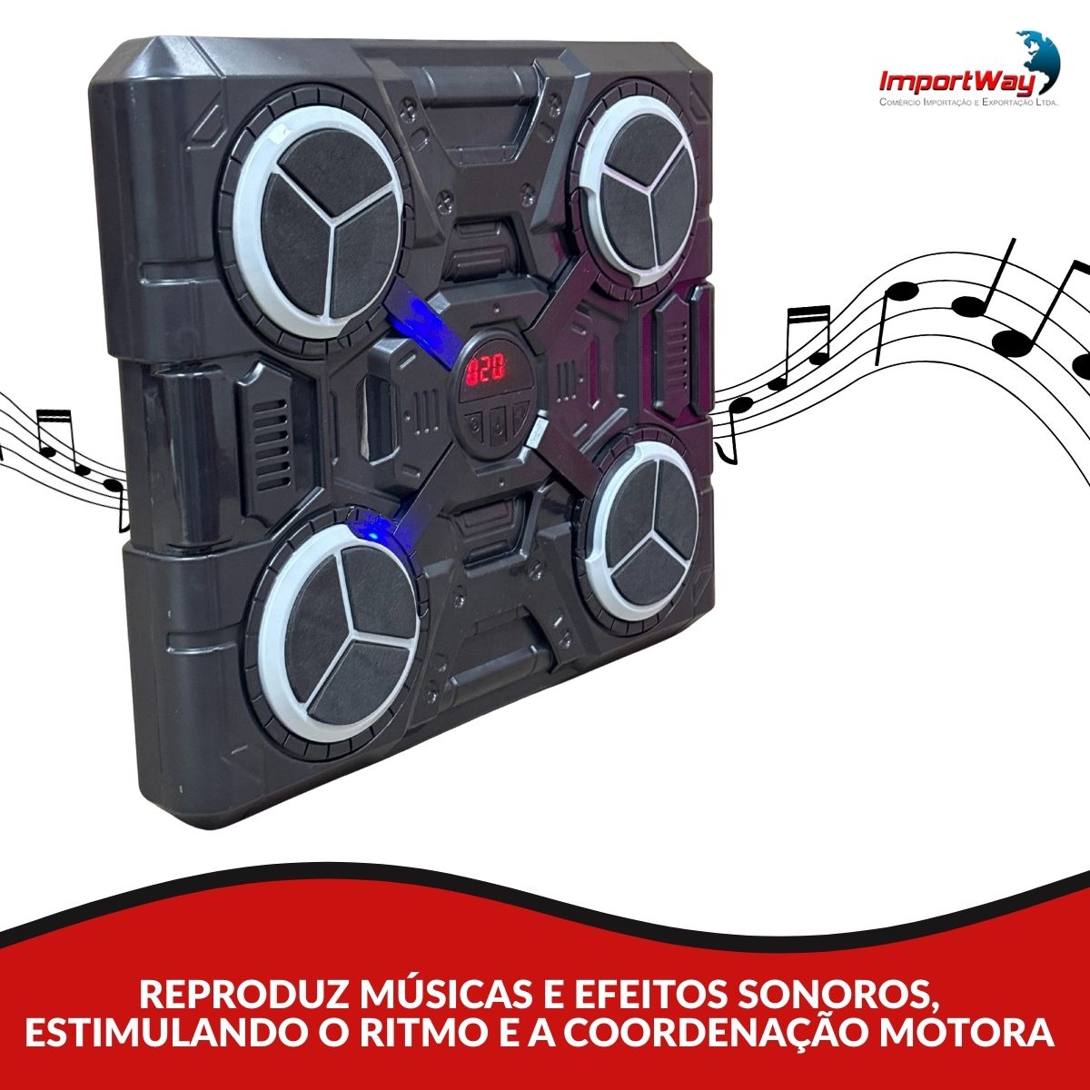 Equipada com luzes interativas e efeitos sonoros, ela cria um jogo dinâmico onde o usuário precisa acertar os alvos iluminados no ritmo da música. Ideal para crianças, jovens e até adultos que querem gastar energia de forma divertida e segura.