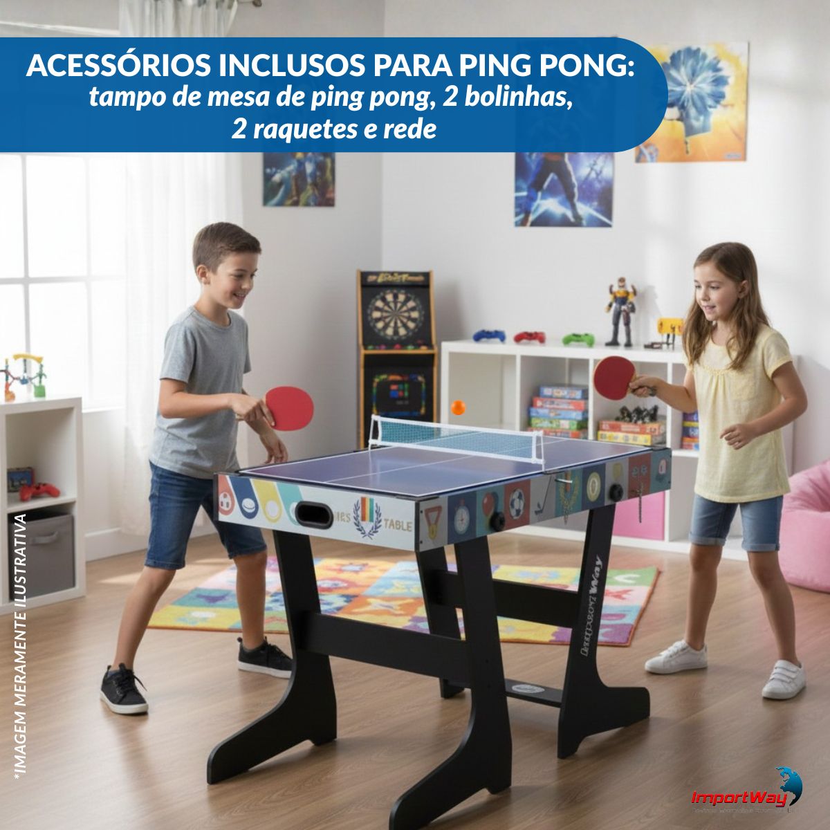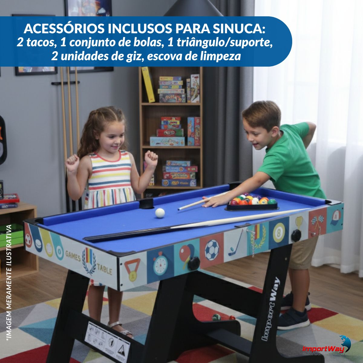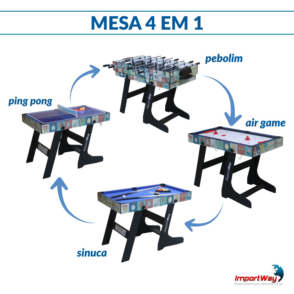 Mesa 4x1 Dobrável Bilhar, Ping Pong, Air Game E Pebolim Importway