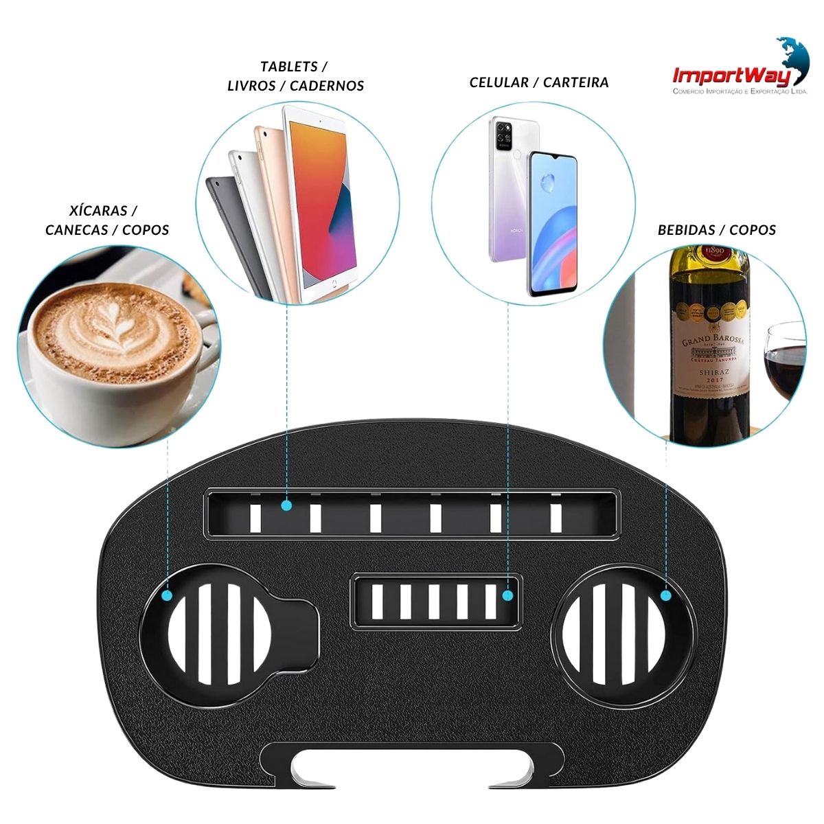 Mesa de Apoio Portátil para Cadeira com Suporte para 2 Copos ImportWay Preto