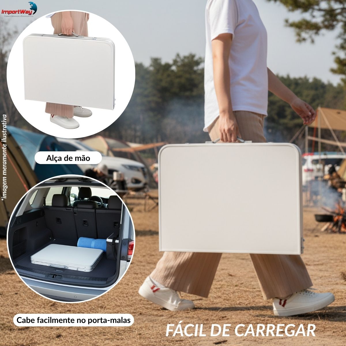 Ideal para acampamentos, piqueniques, viagens, festas e momentos de lazer, essa mesa é multifuncional e super fácil de transportar.