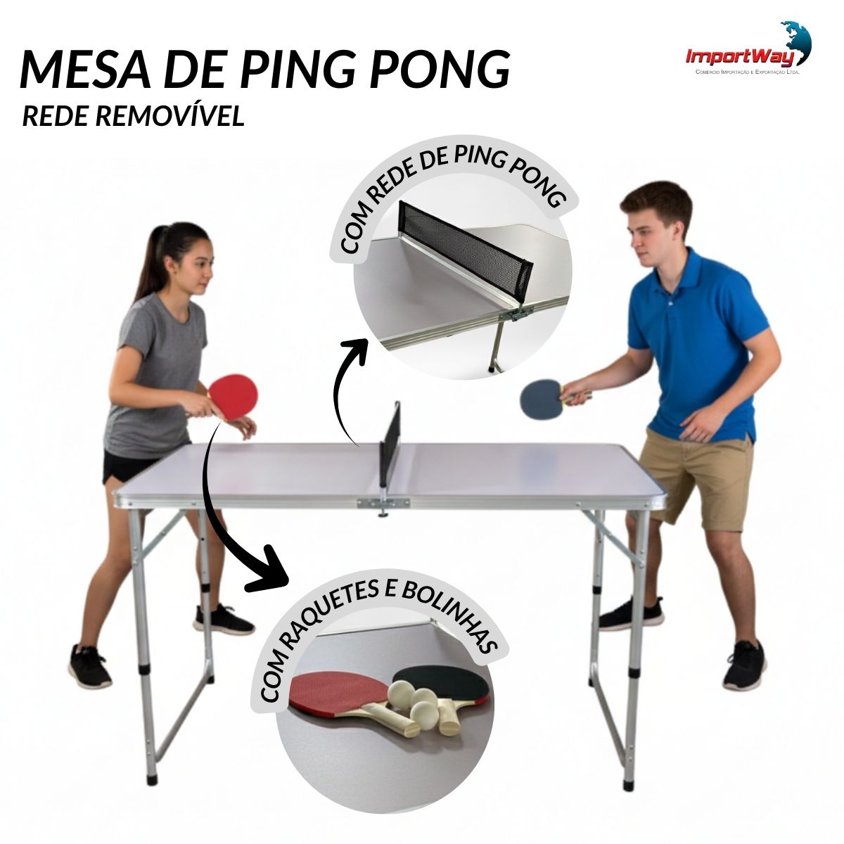 Além de servir como mesa de apoio para refeições e jogos, acompanha rede de ping pong, garantindo momentos de descontração com amigos e familiares.
