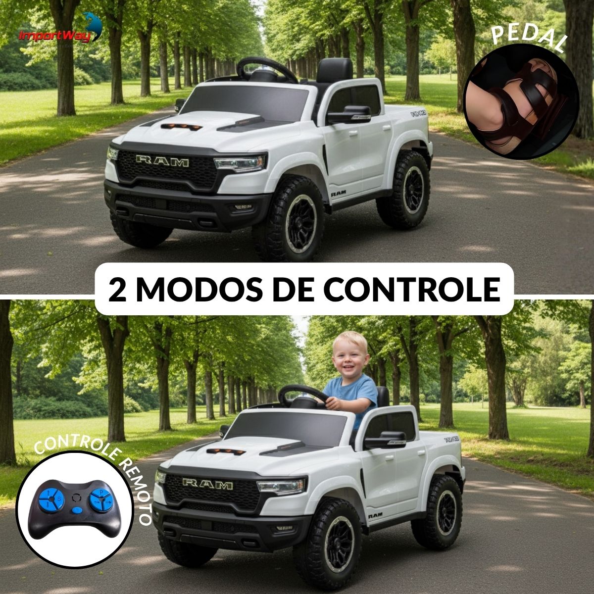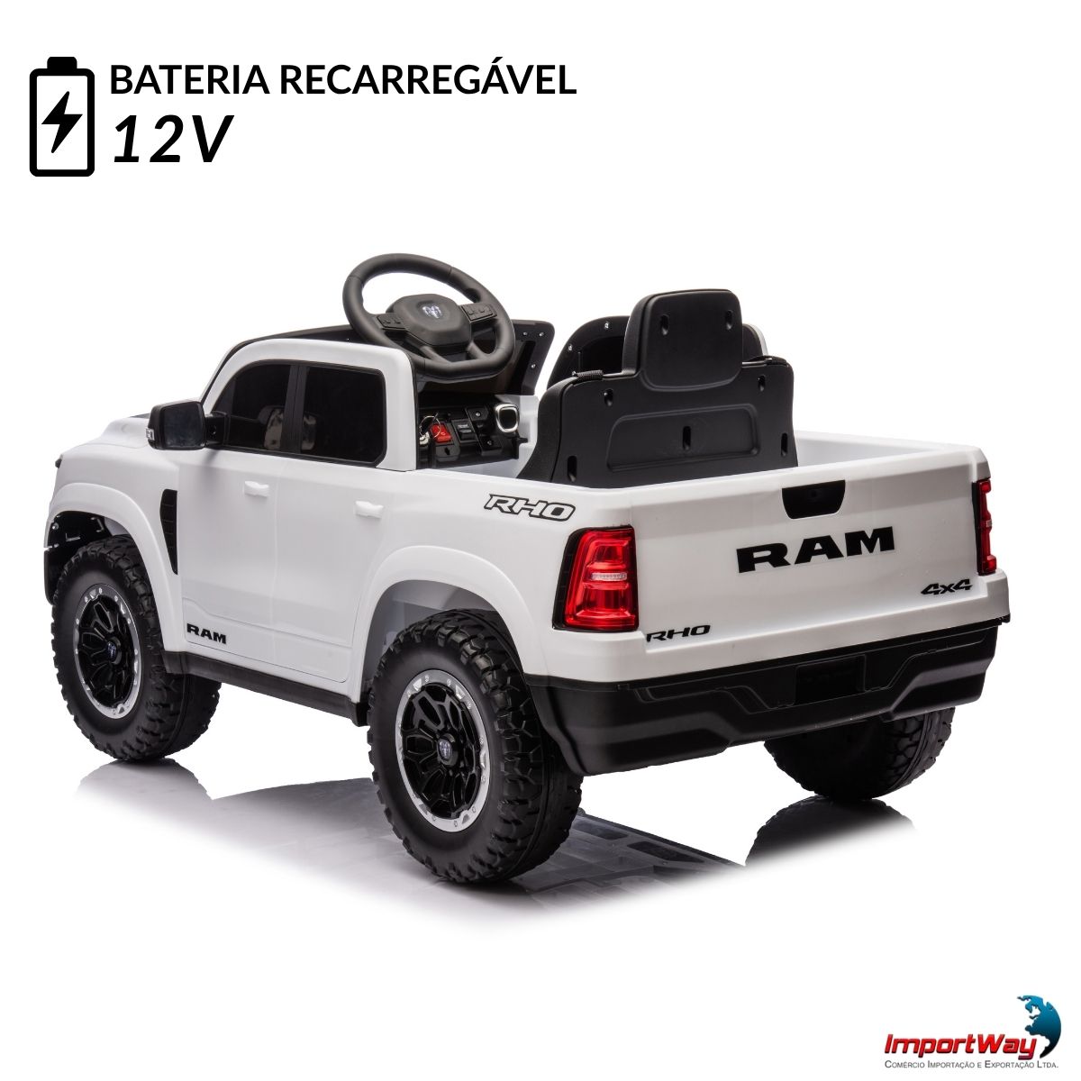 Mini Carro Elétrico Infantil 12v Dodge Ram 1500 Rho Branco Importway