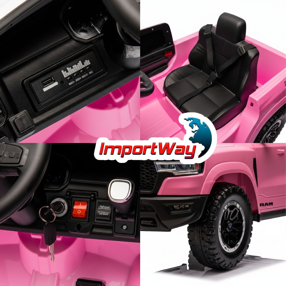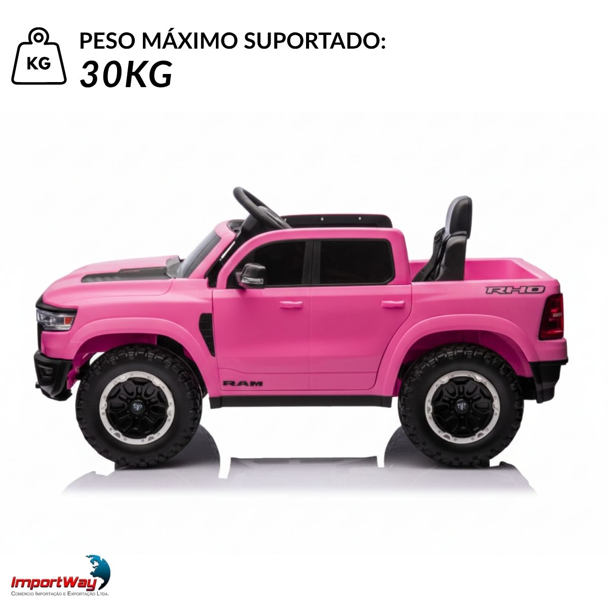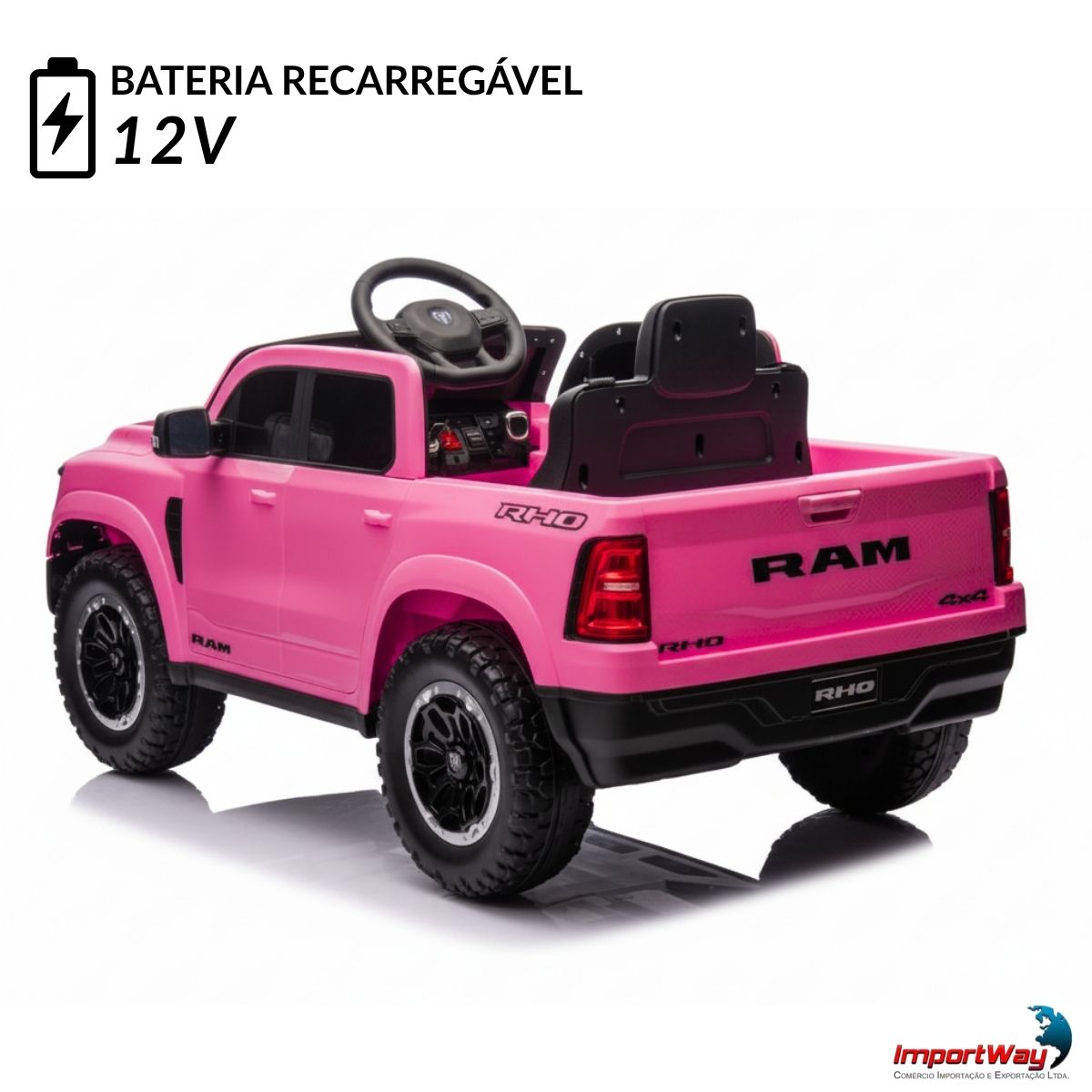 Mini Carro Elétrico Infantil 12v Dodge Ram 1500 Rho Rosa Importway