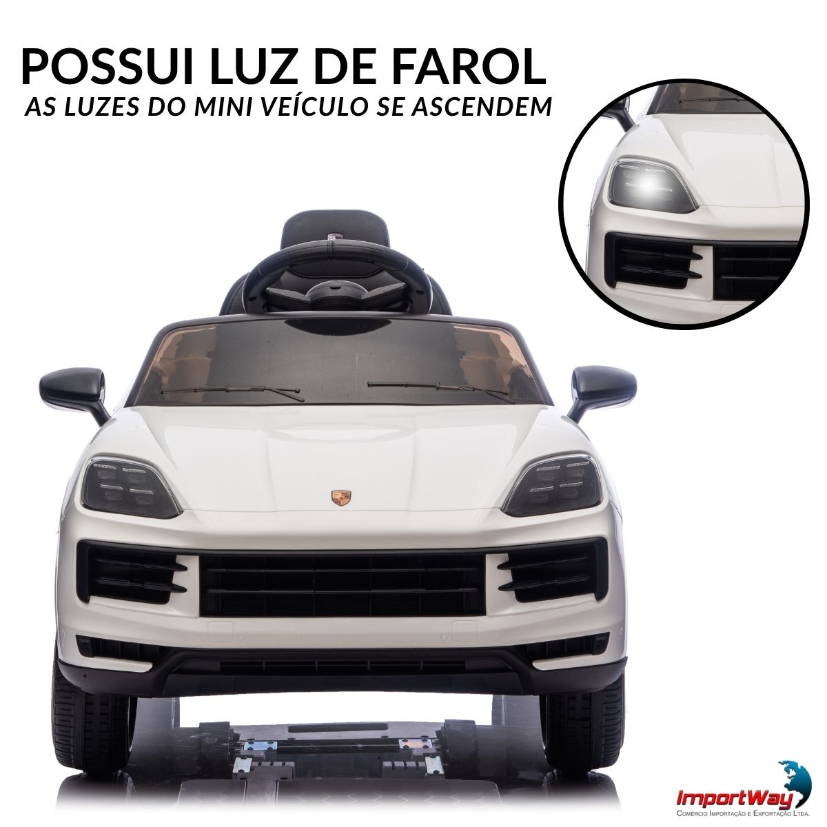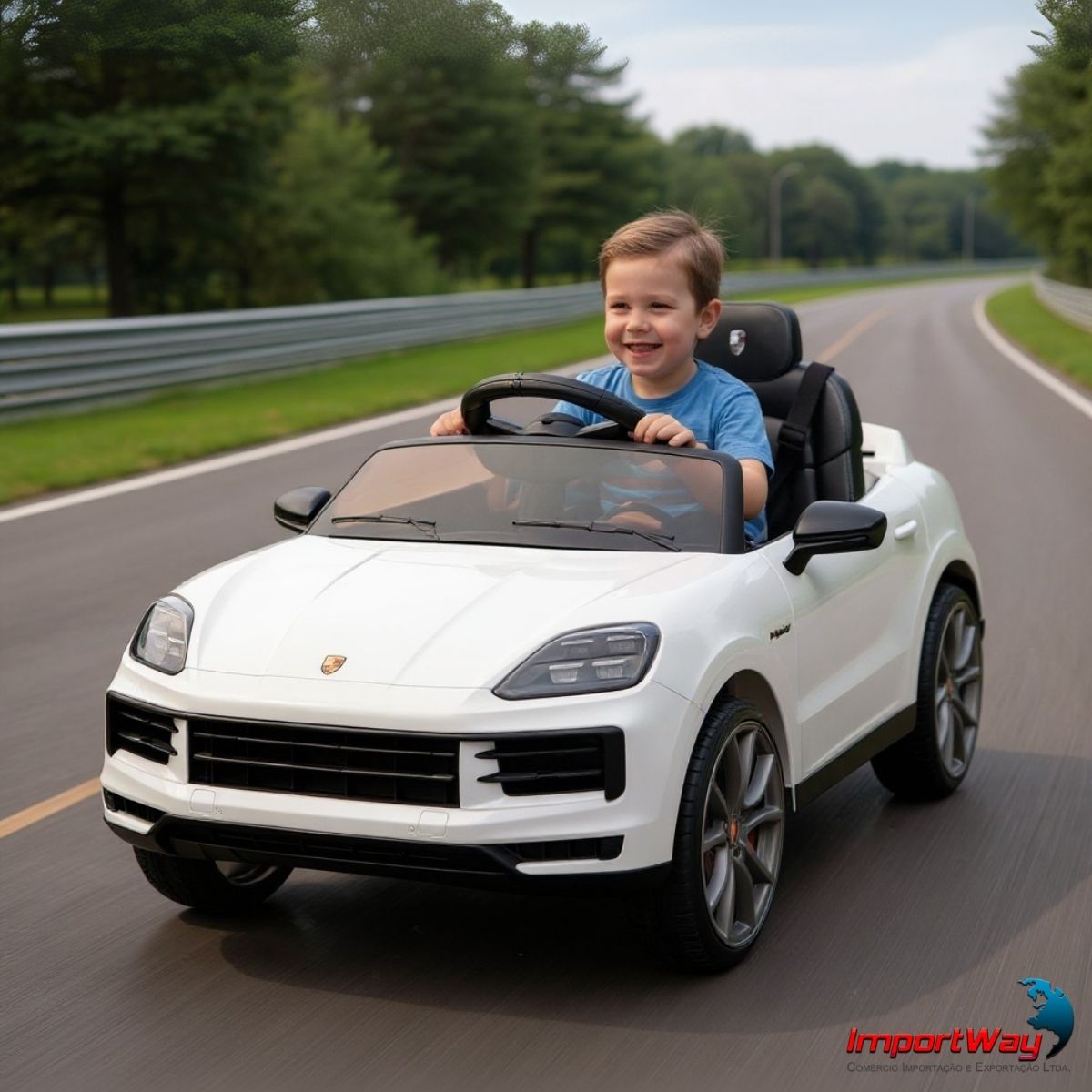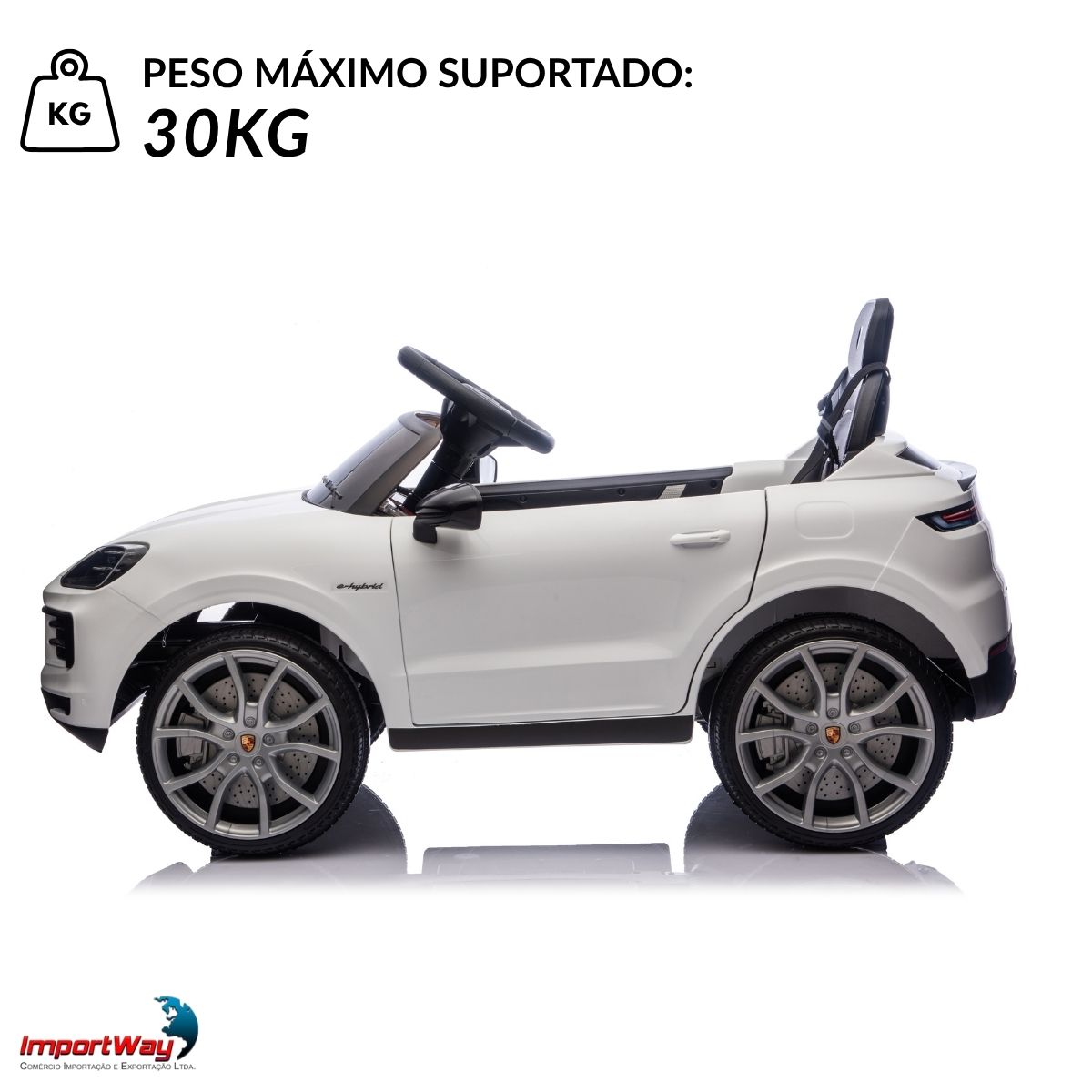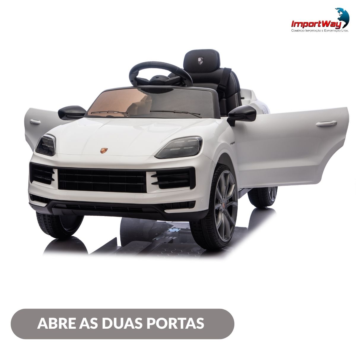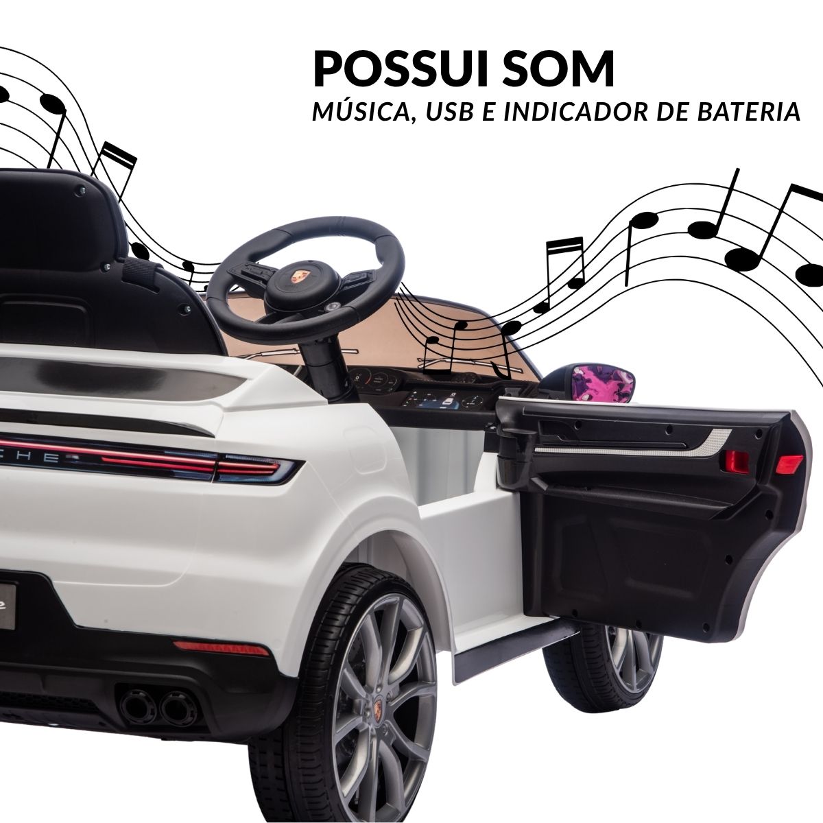 Inspirado no icônico SUV da Porsche, ele traz um design sofisticado e realista, com acabamento brilhante e detalhes que fazem qualquer criança se sentir como um verdadeiro motorista de um carro de luxo.