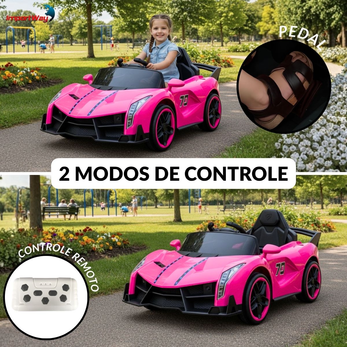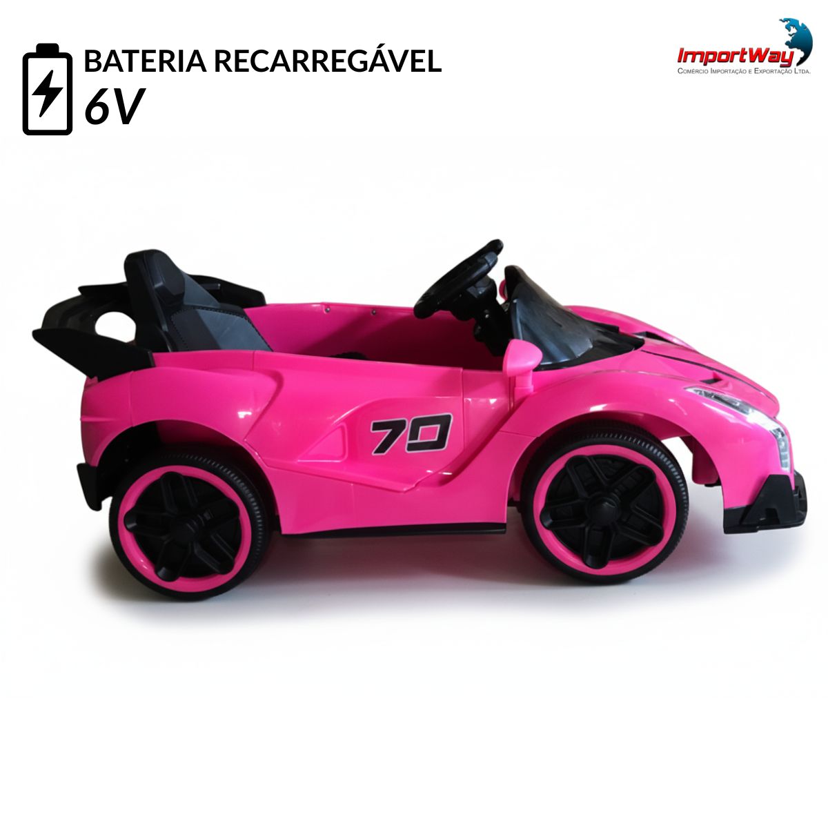 Mini Carro Elétrico Infantil 6v C/ Luz Música USB Rosa Importway