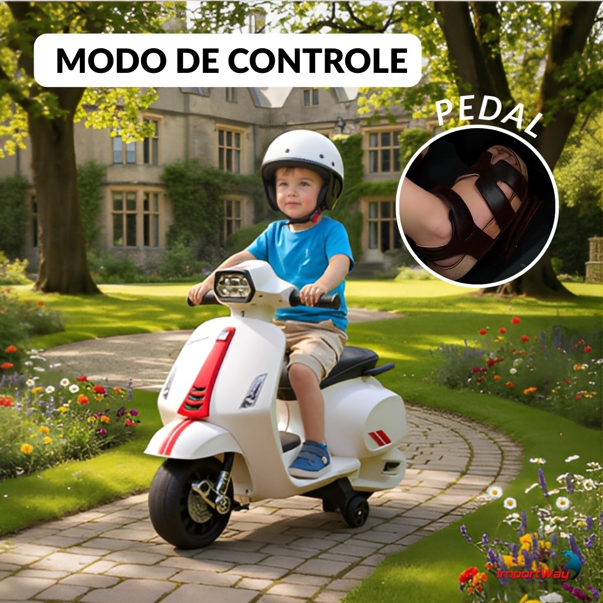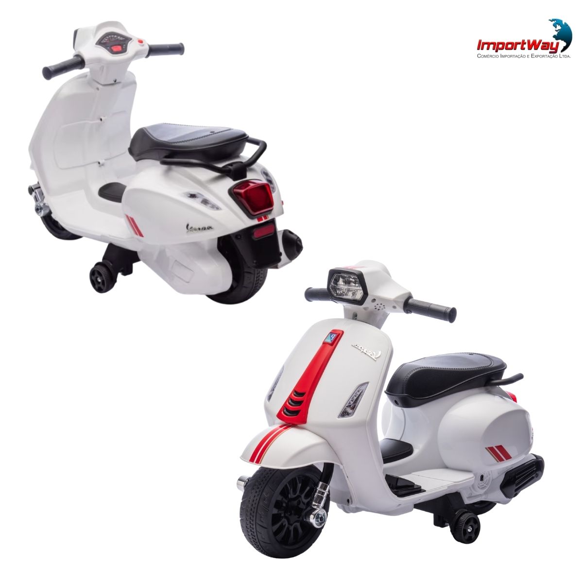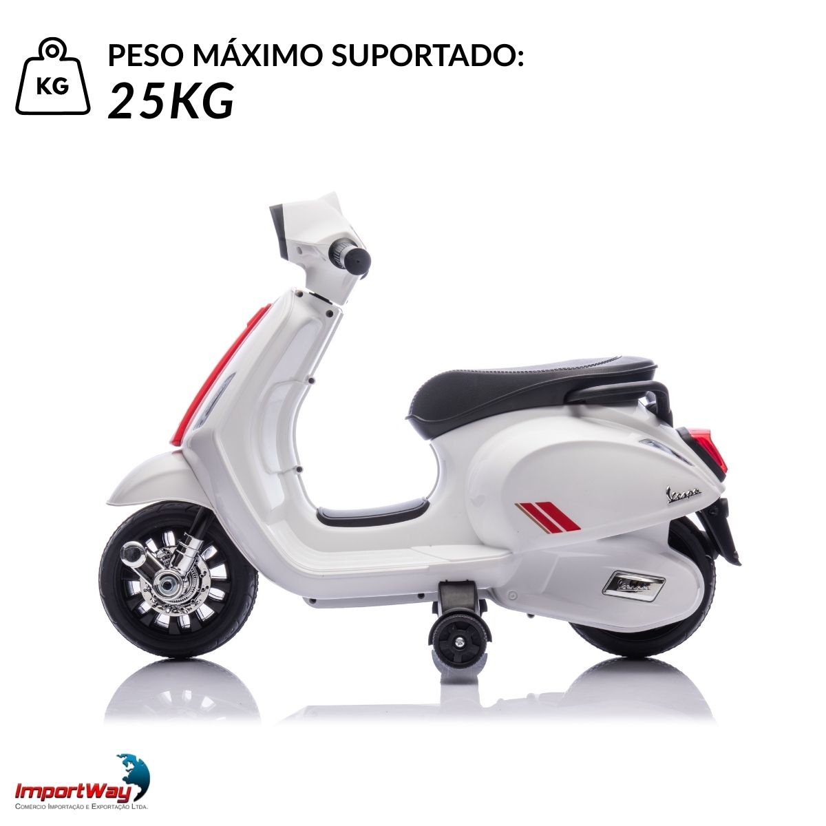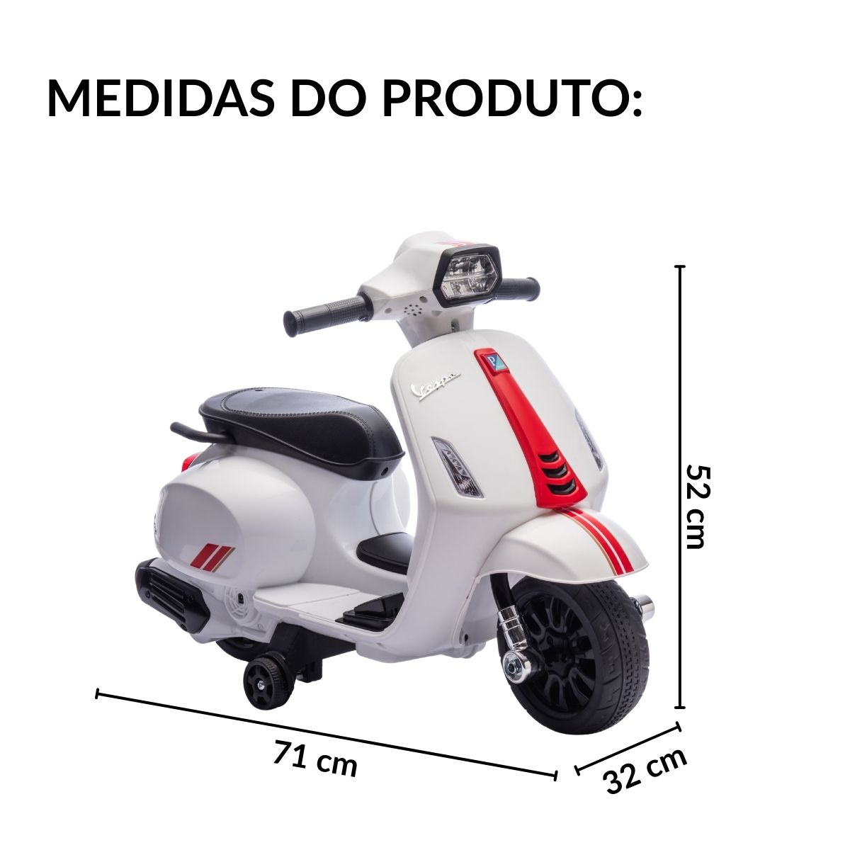 Inspirada na lendária scooter italiana, essa mini moto traz todo o charme e o design clássico da Vespa original, adaptada especialmente para os pequenos aventureiros.