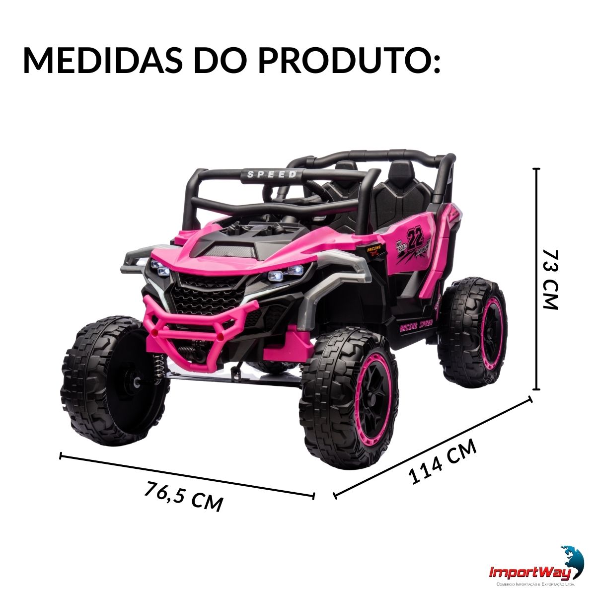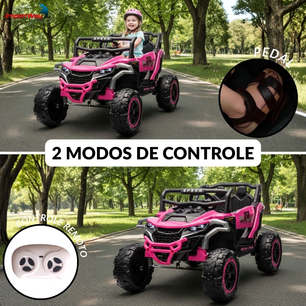 Dê ao seu pequeno uma experiência de direção cheia de aventura com o Quadriciclo Elétrico Infantil 12V da Importway! Moderno, seguro e super divertido, ele é ideal para crianças que adoram explorar e brincar ao ar livre.