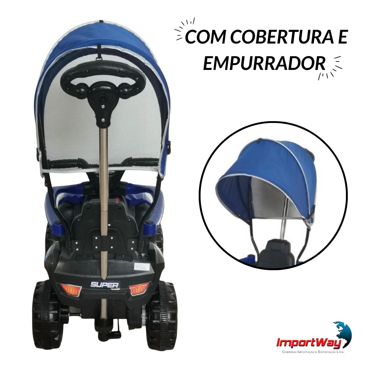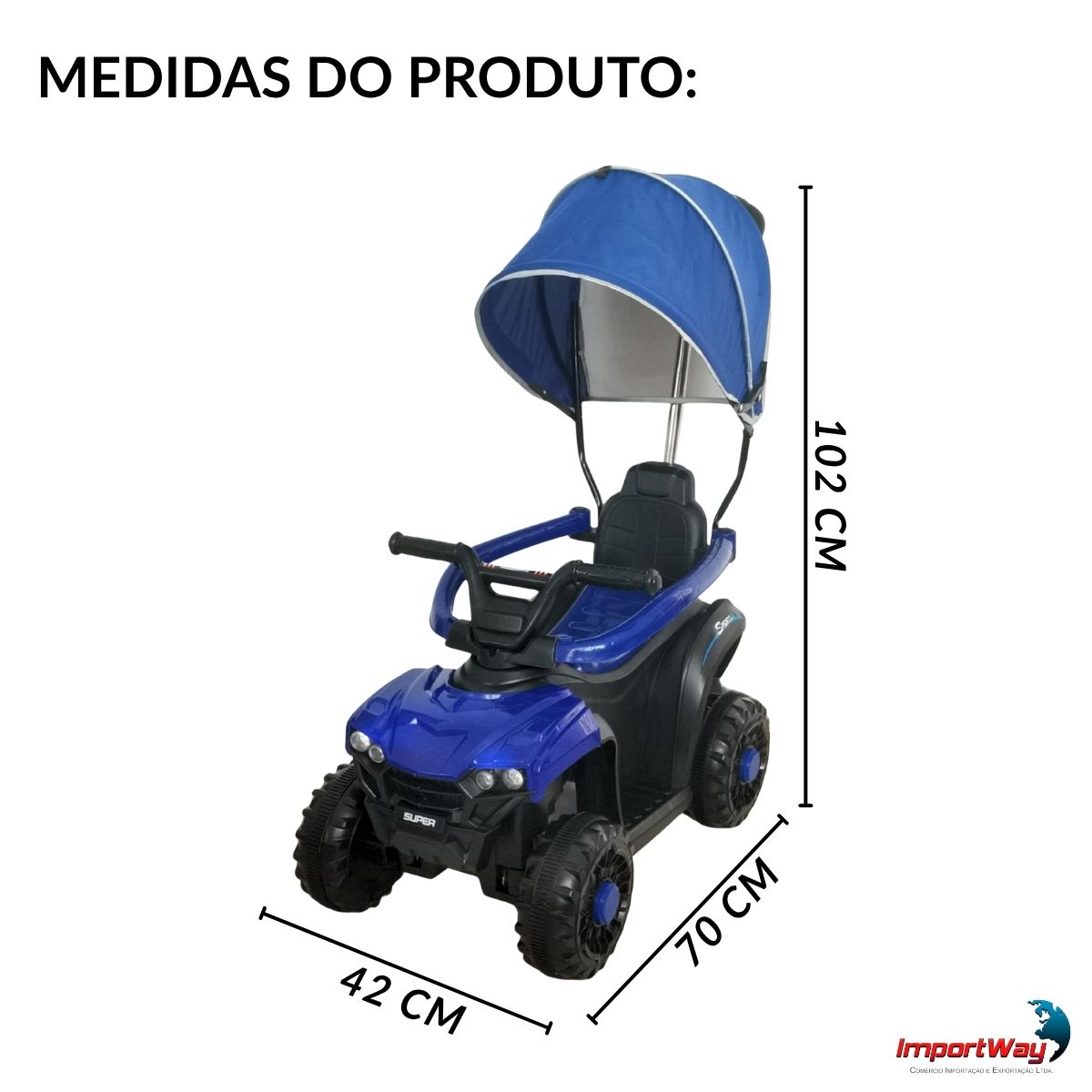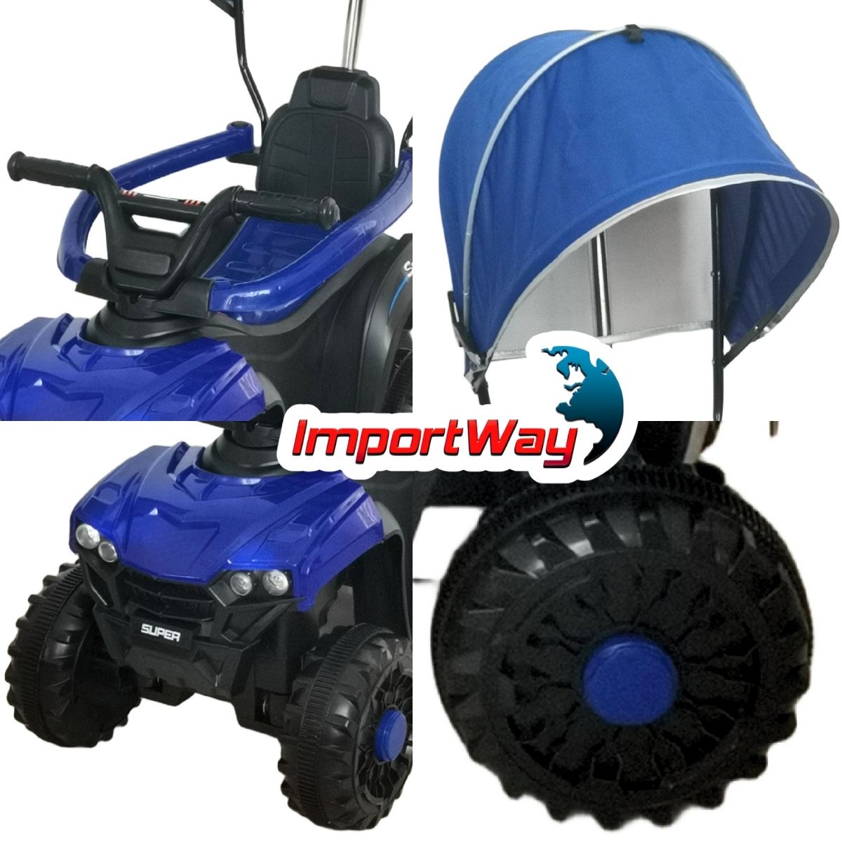 Mini Quadriciclo Elétrico Infantil 6v C/ Cobertura Azul Importway