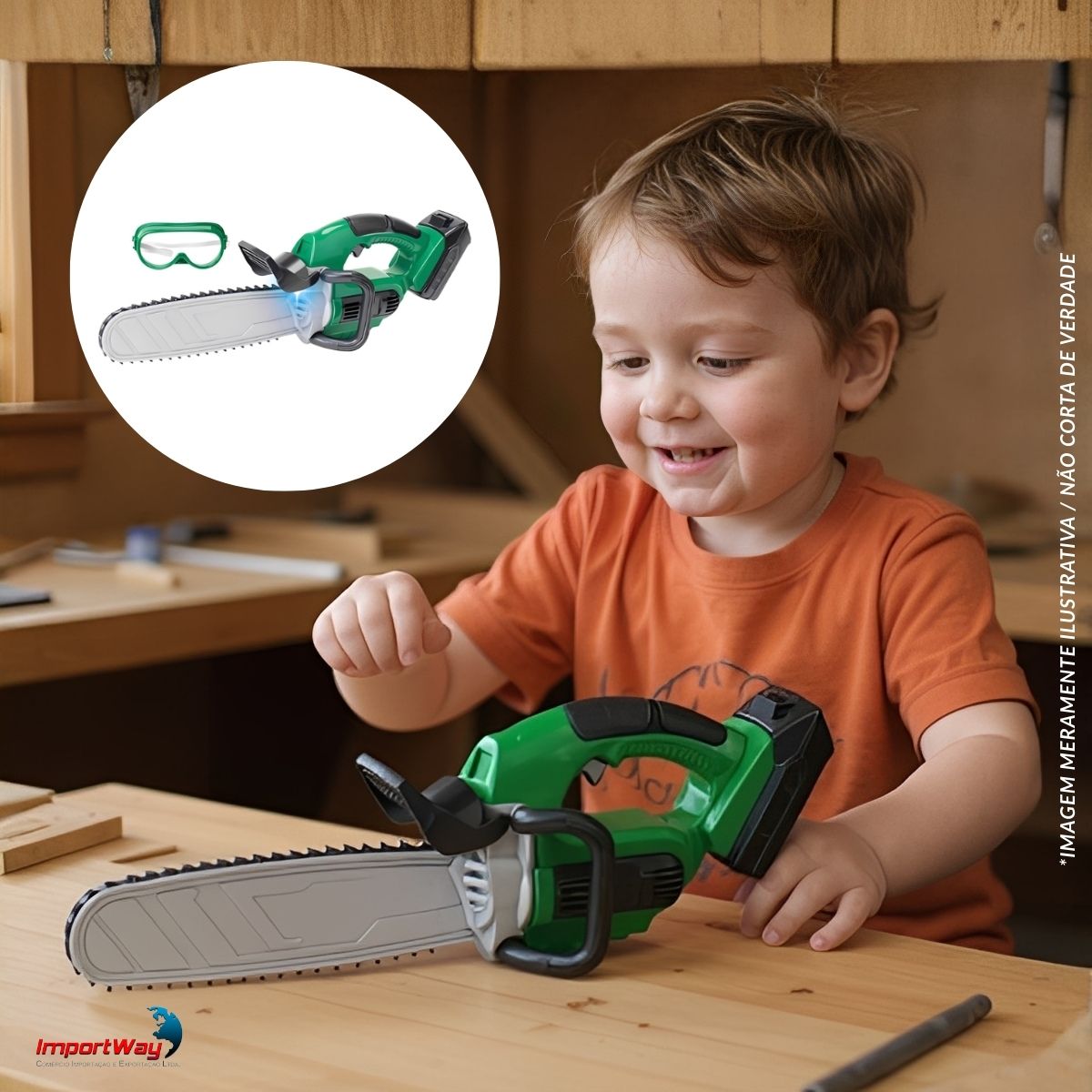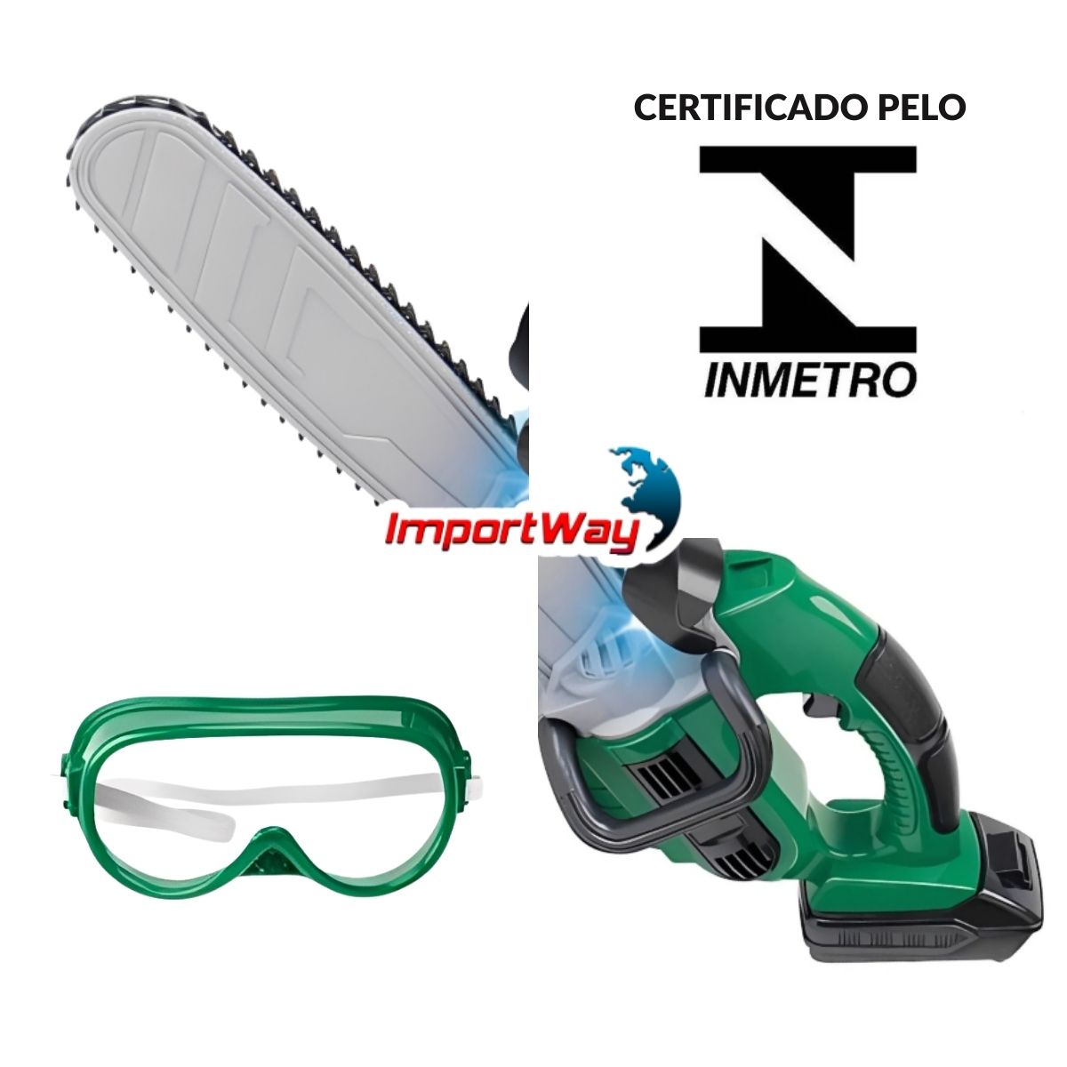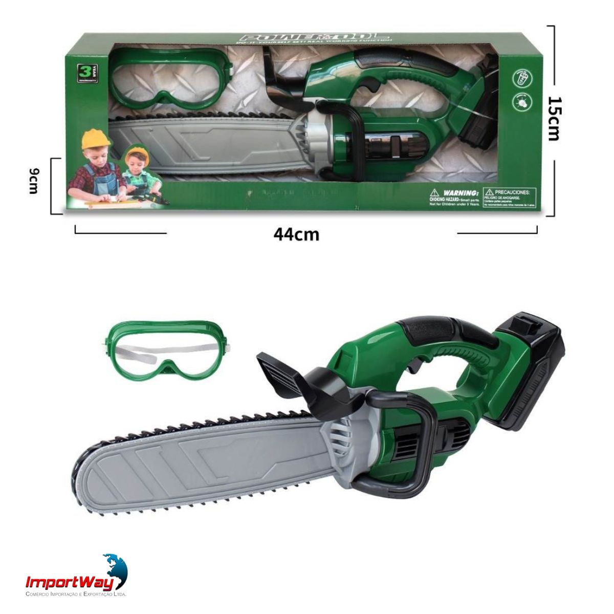 Motosserra Elétrica C/ Óculos Brinquedo Infantil Luz e Som ImportWay