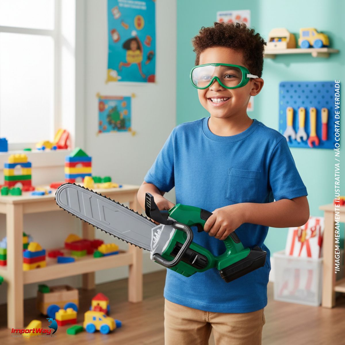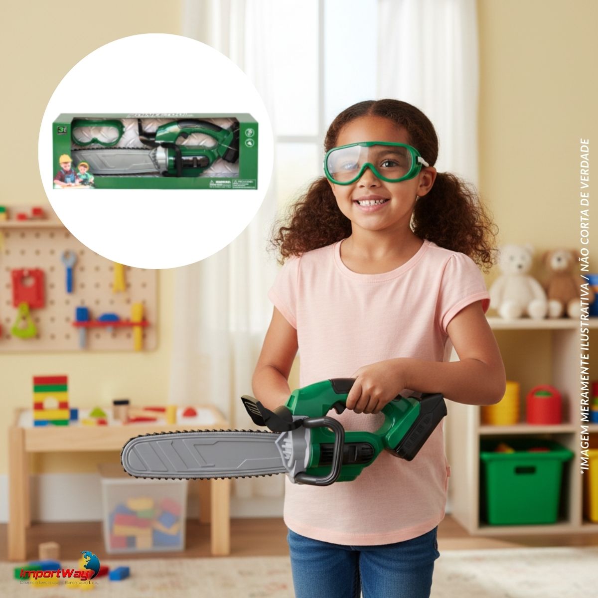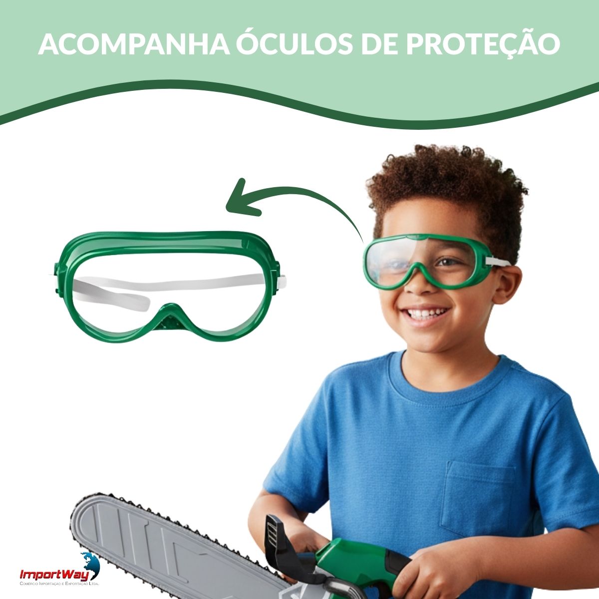 Motosserra Elétrica C/ Óculos Brinquedo Infantil Luz e Som ImportWay