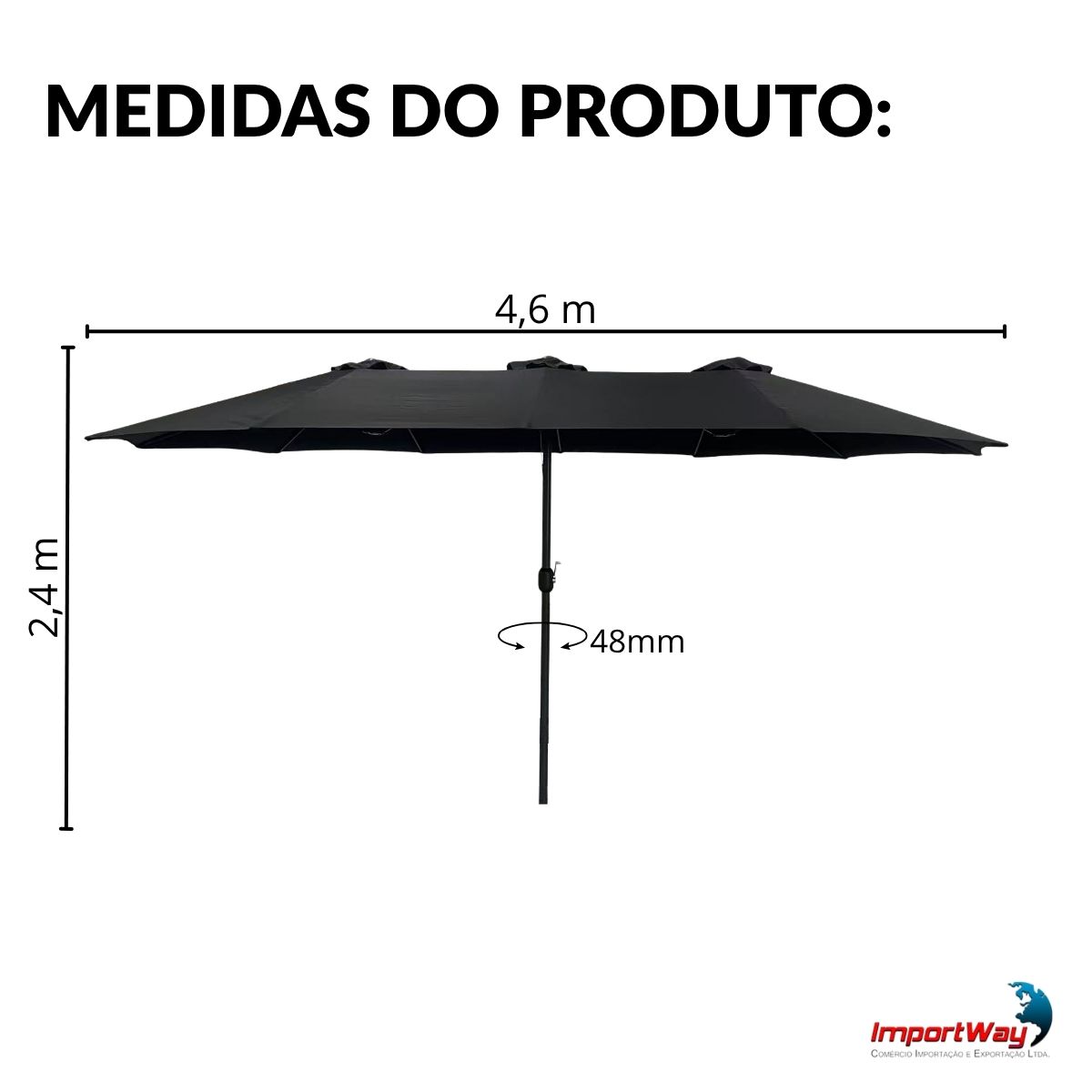 Ombrelone Guarda Sol Jardim Central Duplo 4,60m Preto ImportWay