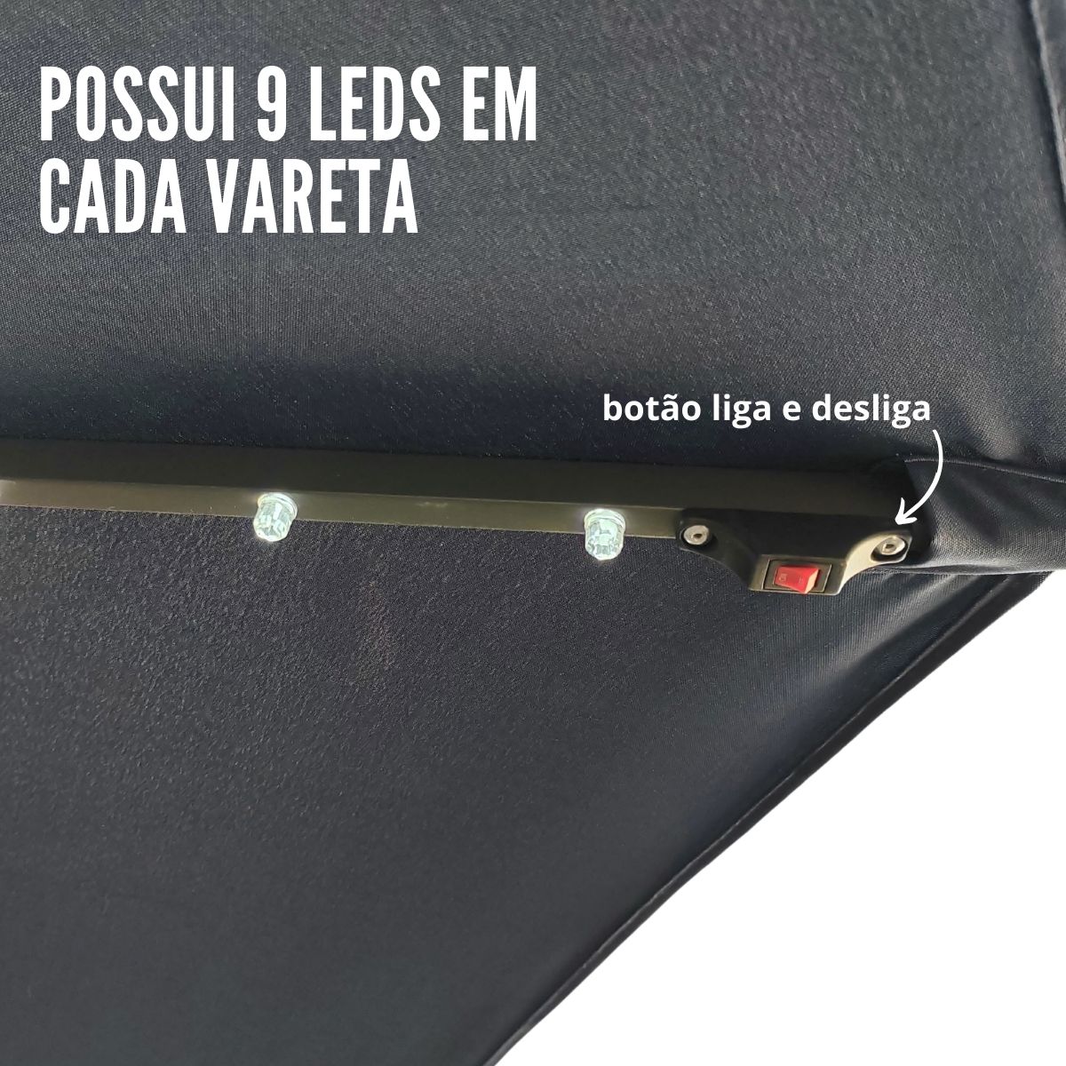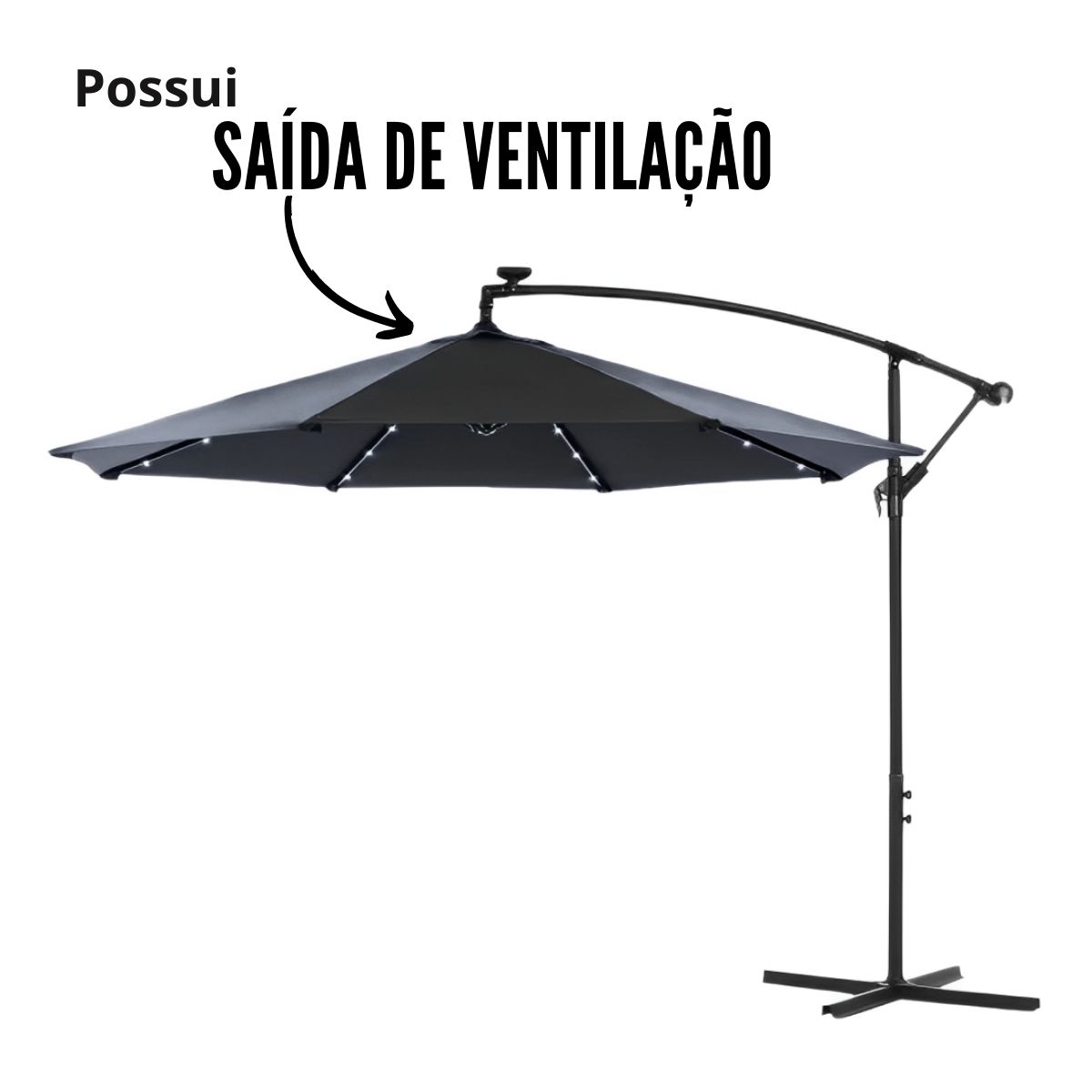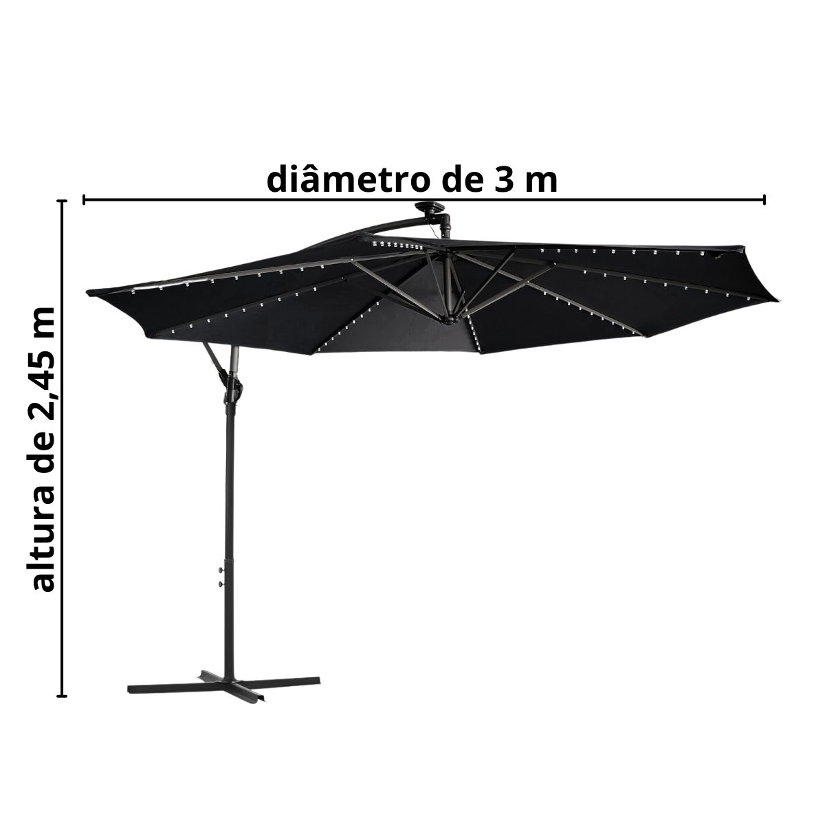 Ombrelone Guarda Sol Lateral 3,00m C/ Led Importway Preto