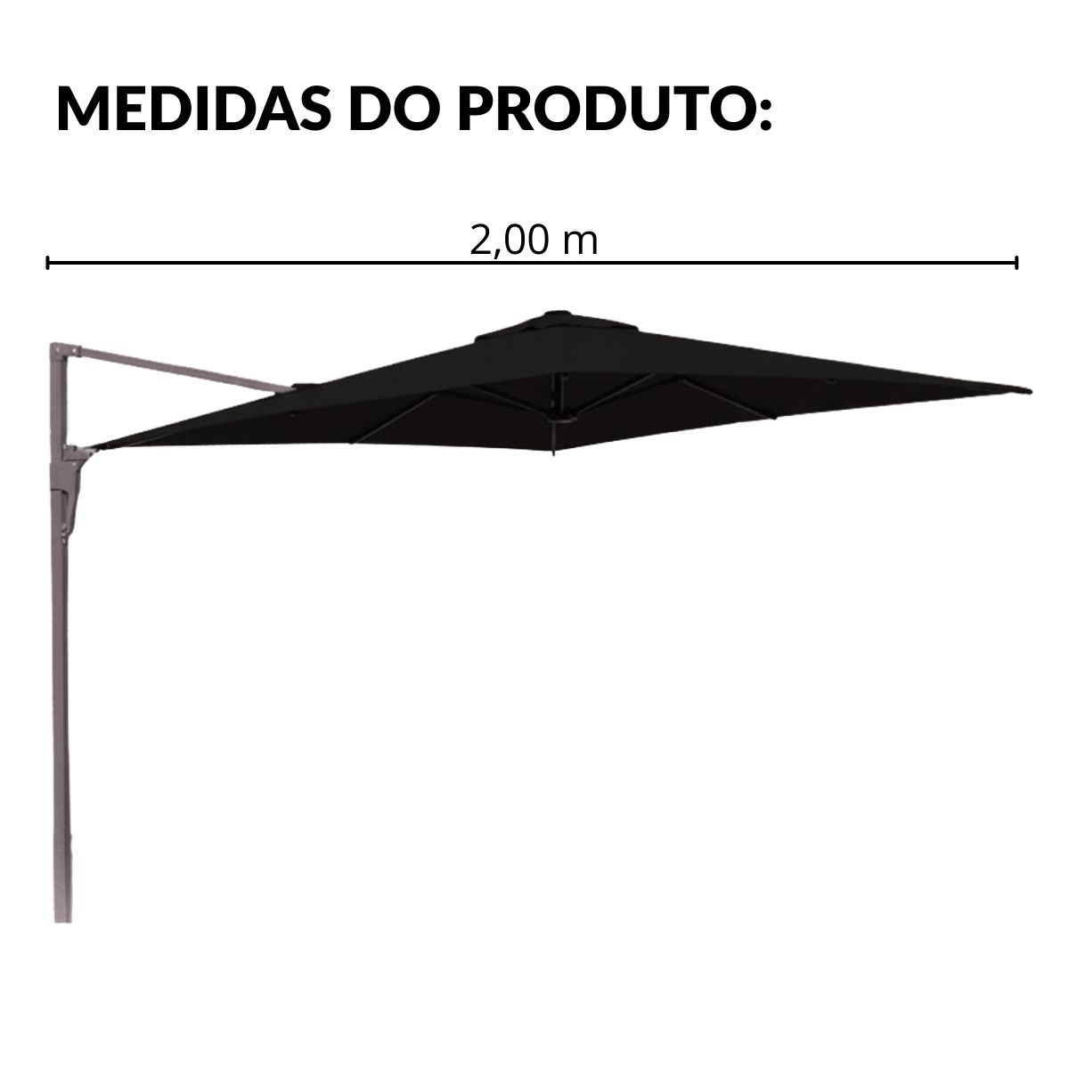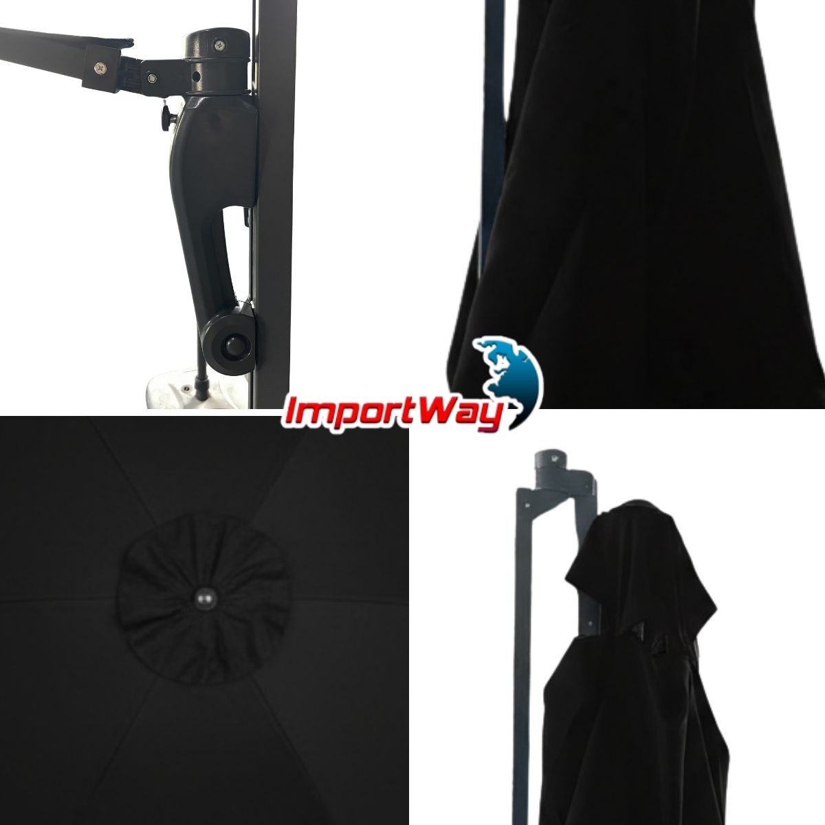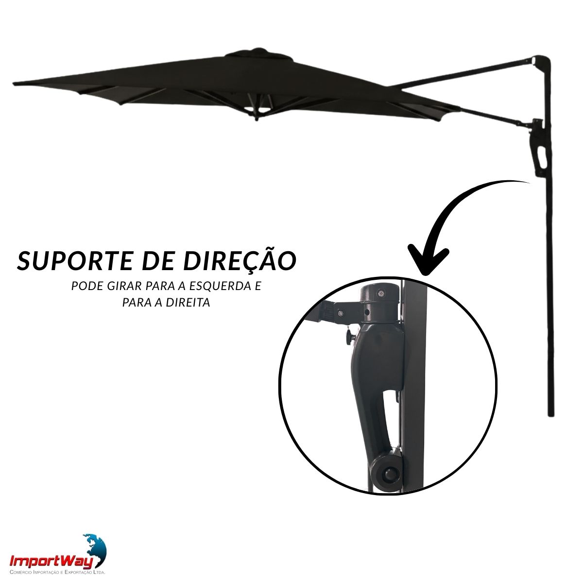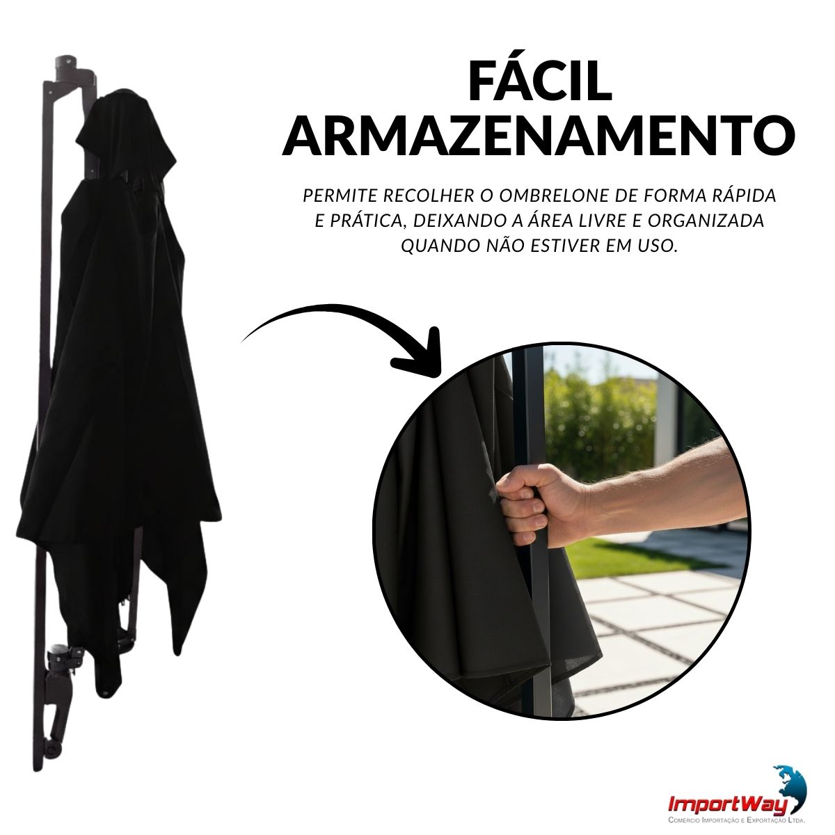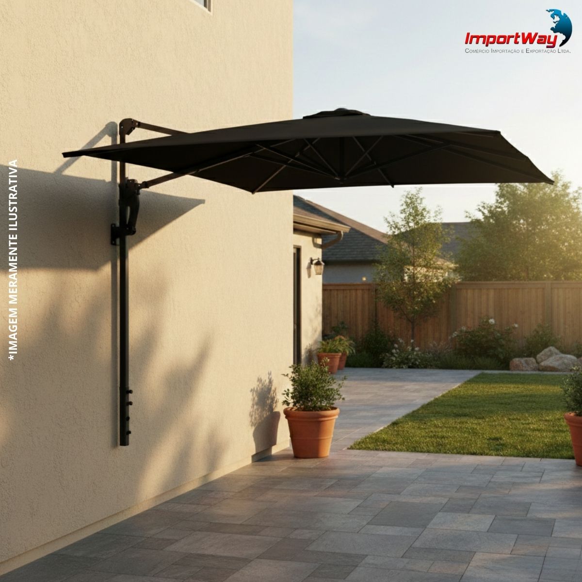 Ombrelone Guarda Sol Parede Preto 2x2m Retrátil Articulado ImportWay