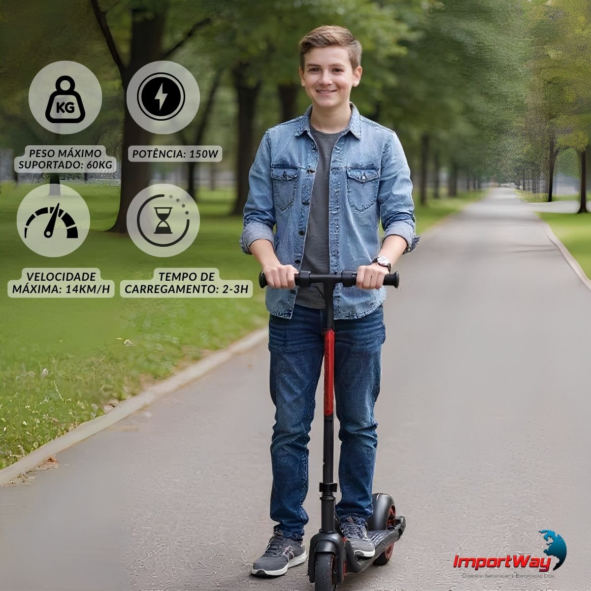 Chegue mais rápido, com conforto e estilo, usando o Patinete Elétrico 150W. Desenvolvido para jovens e adultos de até 60kg, ele combina potência, praticidade e segurança, sendo a escolha ideal para deslocamentos curtos, passeios ou momentos de lazer.